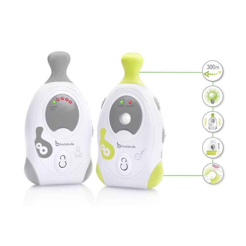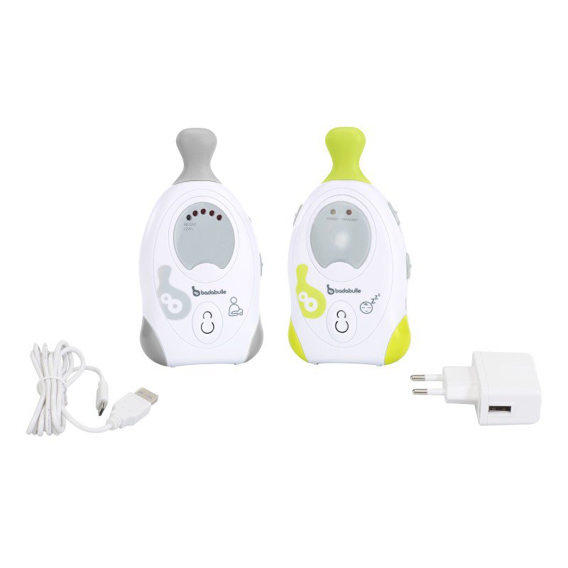 - detskú jednotku možno používať na batérie 4x AAA 1,5V (nie sú súčasťou) alebo pripojené cez adaptér do siete (súčasťou je len 1 adaptér)