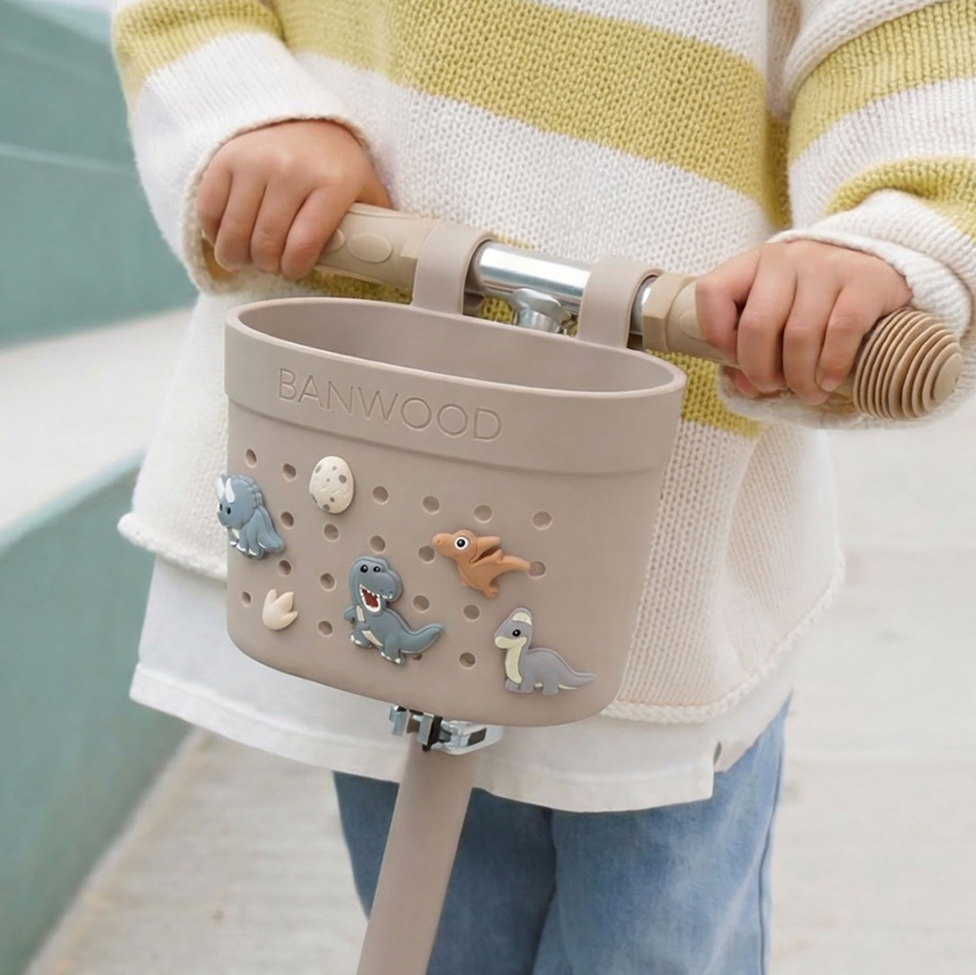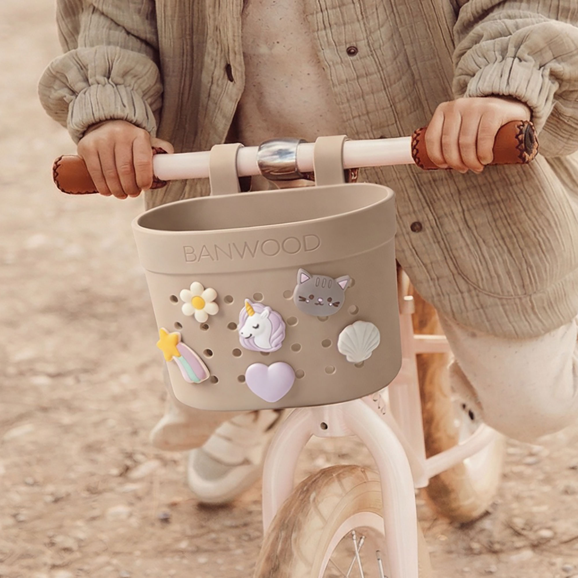 Košík, ktorý si môžete prispôsobiť. Víziou Banwood je pozitívne ovplyvňovať aktívny životný štýl detí od útleho veku. Banwood ponúka štýlové produkty v nadčasovom minimalistickom dizajne a vysokej kvalite, ktoré pomáhajú rozvíjať osobnosť detí a vytvárať spomienky na detstvo plné radosti. Milujeme spôsob, akým sa deti hrajú! Nadčasový škandinávsky dizajn v klasickom “vintage” štýle, bez kompromisov na kvalite a bezpečnosti. Banwood košík Pin & Ride je vyrobený z recyklovanej gumy v niekoľkých jednofarebných zemitých tónoch. Je ideálny na prenášanie obľúbených vecí, od malých hračiek až po vzácne poklady, ktoré deti nájdu po ceste. Ľahko sa pripevňuje a je navrhnutý tak, aby sa hodil na všetky produkty Banwood, ako aj na väčšinu iných bicyklov a kolobežiek. Košík Pin & Ride si deti vedia ozdobiť ozdobami Banwood. Ozdoby Banwood sa predávajú samostatne. Vyrobené z recyklovanej, odolnej gumy. Flexibilné popruhy z recyklovanej gumy. Jednoduché pripevnenie na riadidlá bez použitia náradia. Vhodné pre všetky Banwood produkty, ako aj pre väčšinu iných bicyklov a kolobežiek. Rozmery: 17,8 × 10,6 cm (výška 13,8 cm)