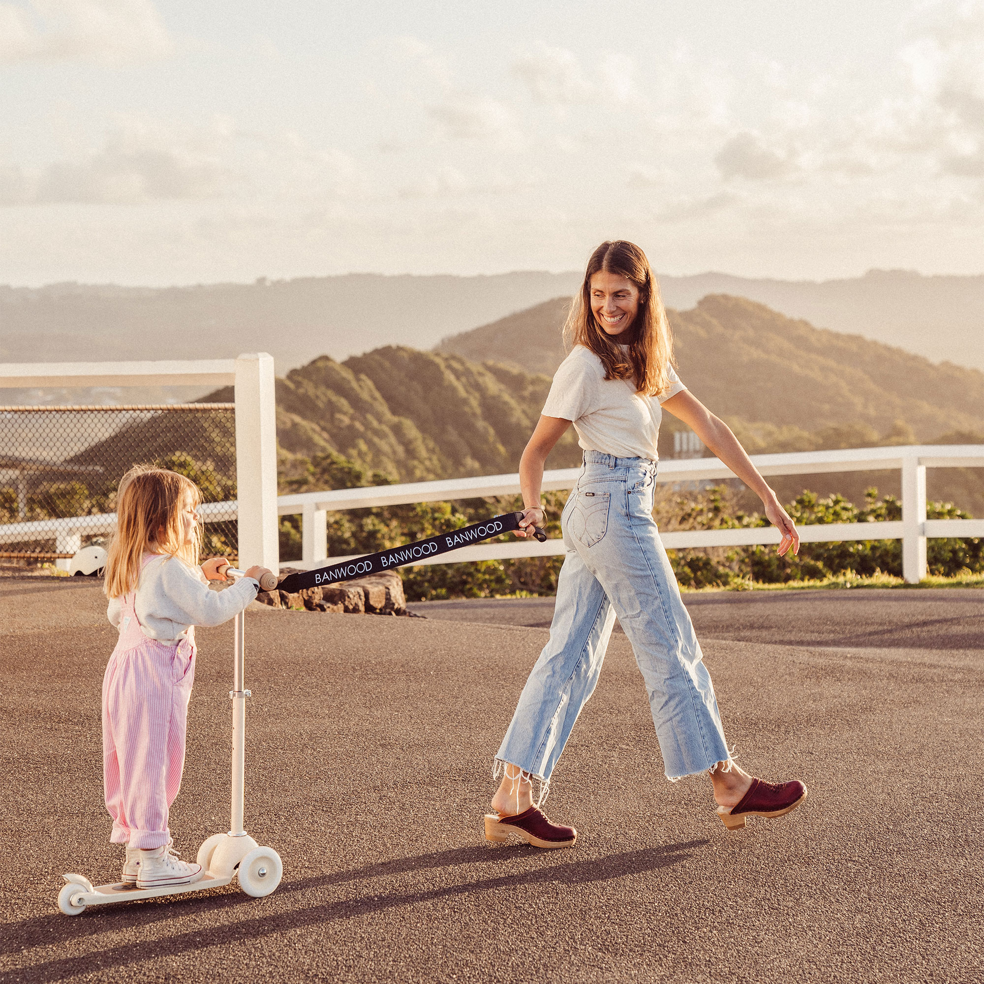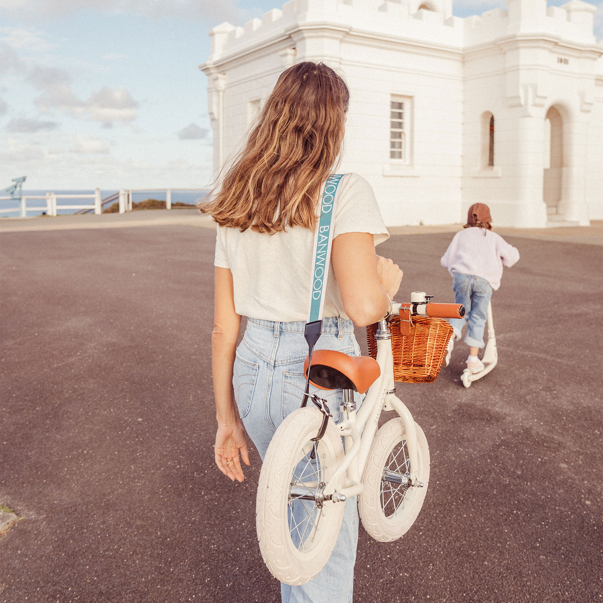 Víziou Banwood je pozitívne ovplyvňovať aktívny životný štýl detí od útleho veku. Banwood ponúka štýlové produkty v nadčasovom minimalistickom dizajne a vysokej kvalite, ktoré pomáhajú rozvíjať osobnosť detí a vytvárať spomienky na detstvo plné radosti. Milujeme spôsob, akým sa deti hrajú! Banwood popruh je štýlový a praktický módny doplnok, ktorý poslúži keď treba po celodennom dobrodružstve odľahčiť náklad po ceste domov. Popruh má dvojitý klip, ktorý sa ľahko používa v kombinácii s kolobežkami, trojkolkami aj odrážadlami. Dá sa využiť aj vtedy, keď treba vášmu drobcovi pomôcť udržiavať rovnováhu alebo potiahnuť ho vpred. Dĺžka popruhu 120 cm. Kovové zapínanie. Materiál popruhu: pevná látka Dacron. Konce popruhu z vegánskej kože. Môže byť pripojený na odrážadlo alebo kolobežku.