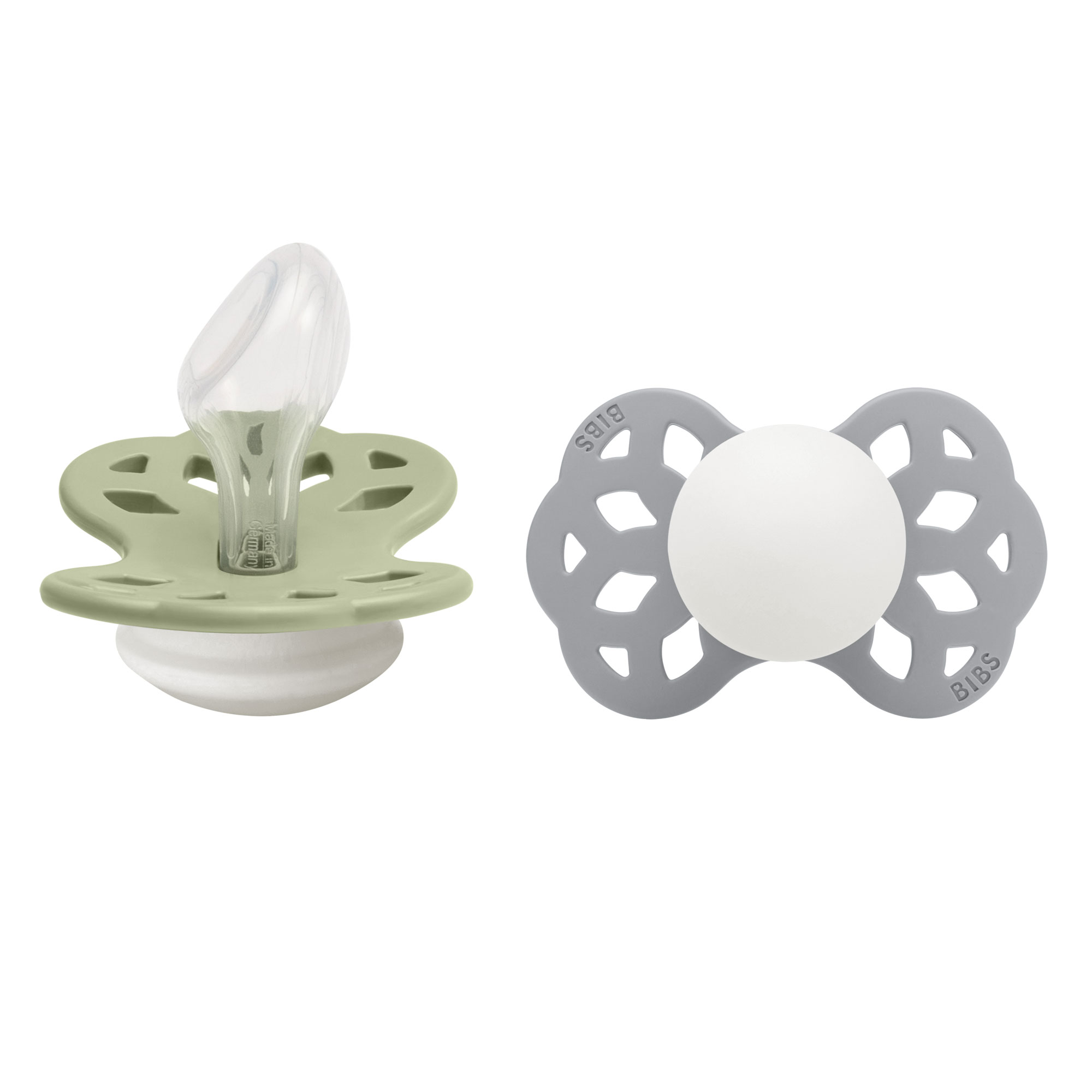 BIBS dobývajú celý svet. Jednoduché a štýlové. Ikonické cumlíky navrhnuté a vyrábané v Dánsku už od roku 1978. Ich minimalistický škandinávsky dizajn a široký farebný výber sú pre BIBS cumlíky typické. Všetky BIBS produkty sú garanciou najvyššej kvality detského sortimentu. BIBS Infinity je exkluzívny ortodontický cumlík anatomického tvaru s jedinečným dizajnom prepletených kruhov, ktoré symbolizujú kolobeh života a nekonečnosť. Dokonalá súhra čistého minimalizmu, elegancie a jemnosti. Anatomicky tvarovaná sacia časť je vyrobená zo 100%-ného medicínskeho silikónu najvyššej kvality a vďaka jej zúženému tvaru v oblasti zhryzu je na zúbky a ďasná vyvíjaný minimálny tlak, čím je zachovaný ich prirodzený vývoj. Cumlík je navrhnutý tak, aby nedráždil citlivú pokožku bábätka. Zloženie: Sacia časť: 100% silikón najvyššej kvality Ostatné časti: polypropylén (PP) Bez BPA, PVC, ftalátov a iných škodlivých látok. Vyrobené v Dánsku. V súlade s európskym štandardom EN 1400+A2. Veľkosti: BIBS Infinity cumlíky sú k dispozícii v 2 veľkostiach v symetrickom aj anatomickom tvare. Veľkosť 1: 0 – 6 mesiacov Veľkosť 2: 6 – 36 mesiacov