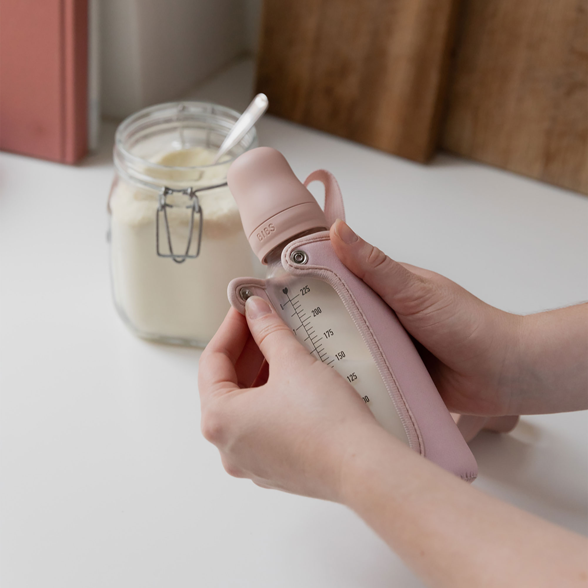 BIBS je obľúbená dánska značka s tradíciou výroby ikonických cumlíkov už od roku 1978. Okrem cumlíkov BIBS ponúka aj pestrý prémiový sortiment pre najmenšie deti v minimalistickom škandinávskom dizajne a širokej farebnej palete. Všetky BIBS produkty sú garanciou najvyššej kvality detského sortimentu.BIBS obal na fľašu je praktickým doplnkom, vďaka ktorému si môžete jednoducho vziať fľašu BIBS kamkoľvek idete. Pevný popruh poslúži na uchytenie fľaše na kočíku, taške či postieľke. Vďaka praktickému otvoru na prednej strane je mierka fľaše ľahko viditeľná. Hrubý neoprénový obal chráni fľašu pri páde. Vďaka otvoru ostáva mierka ľahko viditeľná. Popruh na pripevnenie na kočík, postieľku či tašku. Vhodný na BIBS dojčenské fľaše. Veľkosti: Malý obal – vhodný na fľašu s objemom 110 ml. Veľký obal – vhodný na fľašu s objemom 225 ml. Dôležitá informácia:Pri čistení sklenenej fľaše odstráňte obal na fľašu. Pri nalievaní vriacej vody do fľaše tiež odstráňte obal fľaše. Nasadený obal môže spôsobiť, že fľaša pri položení na rovný povrch bude nestabilná a hrozí jej prevrátenie.Údržba:Opláchnite teplou mydlovou vodou a nechajte vyschnúť.