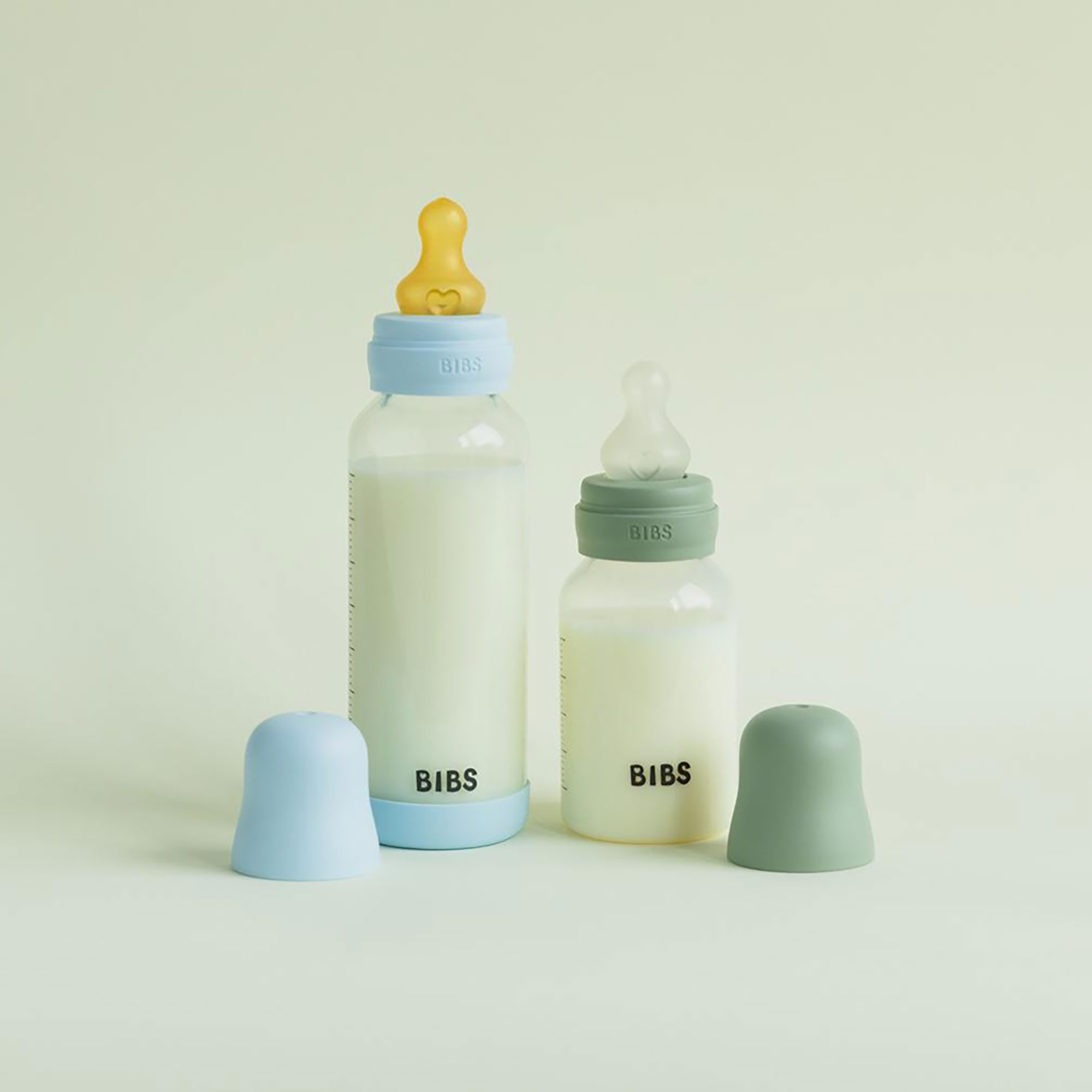 BIBS je obľúbená dánska značka s tradíciou výroby ikonických cumlíkov od roku 1978. Okrem cumlíkov BIBS ponúka aj pestrý prémiový sortiment pre najmenšie deti v minimalistickom škandinávskom dizajne a širokej farebnej palete. Výhodné balenie dvoch BIBS antikolikových dojčenských fliaš a náhradných cumlíkov udrží krok s meniacimi sa potrebami vášho dieťatka a jeho rastúcim apetítom. Praktický darček pre budúcu alebo čerstvú mamičku. Obľúbená fľaša s elegantným dizajnom oceneným Red Dot Design Award. 2 fľaše z potravinárskeho PP bez obsahu BPA a ftalátov – 150ml a 270ml s doplnkami. 4 cumlíky z hypoalergénneho silikónu rôznych prietokov – pomalý prietok (150ml fľaša), stredný prietok (270ml fľaša) a 2 x rýchly prietok (náhradné balenie cumlíkov). Anti-Colic dizajn – unikátny antikolikový ventil v tvare srdiečka pomáha predchádzať plynatosti, refluxu a kolike a podporuje plynulý tok mlieka pre šťastnejšie brušká. Obľúbený okrúhly tvar cumlíka pripomína tvar matkinej bradavky, podporuje podobné umiestnenie jazyka a správnu aktívnu techniku satia ako pri dojčení a tým uľahčuje striedanie dojčenia z prsníka a kŕmenia z fľaše. Mäkký cumlík z hypoalergénneho silikónu medicínskej kvality, s vystuženým rebrovaním pre väčšiu odolnosť a protišmykovou textúrou pre pevné prisatie. Praktické doplnky súčasťou balenia (skladací lievik, 2x tesniaci disk). Jednoduché čistenie – vhodné aj do umývačky riadu, mikrovlnnej rúry, mrazničky (okrem cumlíka a lievika). Vysoká kvalita – všetky komponenty sú vyrobené v Európe zo 100% potravinárskych materiálov bez BPA a iných škodlivín. 100% recyklovateľné. OBSAH BALENIA: 1x BIBS antikoliková dojčenská fľaša so silikónovým cumlíkom 150 ml (pomalý prietok)*. 1x BIBS antikoliková dojčenská fľaša so silikónovým cumlíkom 270 ml (stredný prietok)*. 1x BIBS antikolikové silikónové cumlíky (2x rýchly prietok). 1x skladací lievik pre rýchle a jednoduché naplnenie fľaše. *Súčasťou každej fľaše je cumlík, vrchnák, objímka a tesniaci disk. MIX&MATCH: Okrem kompletnej dojčenskej fľaše, ktorá vám poskytne všetko, čo potrebujete na pohodlné kŕmenie z fľaše (fľaša, cumlík, objímka, vrchnák, tesniaci disk a lievik), je v ponuke aj samostatná náhradná fľaša (150 ml alebo 270 ml) a samostatný set uzáverov na fľašu (objímka, vrchnák a tesniaci disk v rôznych farbách). Môžete si tak vyskladať fľašu podľa potrieb vášho dieťatka a vašich preferencií. BIBS ponúka samozrejme aj náhradné cumlíky v kaučukovom aj silikónovom prevedení, s rôznymi prietokmi (pomalý, stredný, rýchly). POUŽITIE: Pred prvým použitím sterilizujte všetky súčasti fľaše vo vriacej vode po dobu 5 minút, neskôr sterilizujte podľa potreby. Pravidelne kontrolujte cumlíky a podľa potreby ich vymeňte (cca každé 2-3 mesiace v prípade silikónu), alebo skôr, ak sú poškodené. Všetky komponenty fľaše, okrem lievika a cumlíka, sú vhodné do umývačky riadu v hornom koši. Pri čistení cumlíka nepoužívajte ostré predmety. BIBS fľaše spĺňajú európsku normu EN 14350:2020.