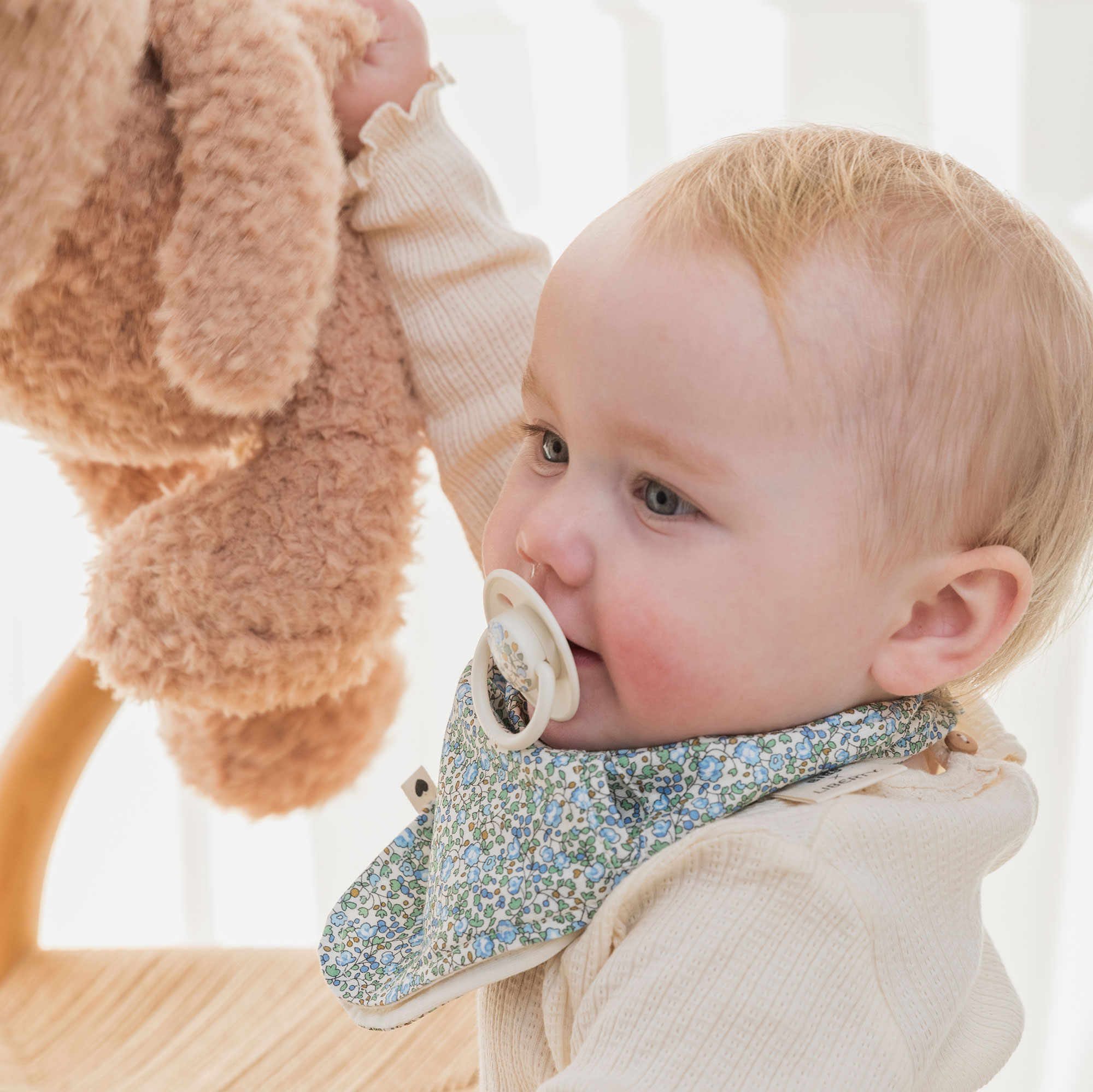 BIBS x LIBERTY je exkluzívna kolekcia najobľúbenejších BIBS produktov s potlačou Liberty. Liberty inšpiruje svet svojou výstrednosťou, nadčasovou eleganciou a prepožičiava svoje originálne vzory luxusným módnym značkám už od roku 1875. V kolekcii BIBS x LIBERTY sme spojili svoje sily, aby sme Vám priniesli produkty, ktoré oslavujú dedičstvo oboch značiek. BIBS dobývajú celý svet. Jednoduché a štýlové. BIBS De Lux je klasický guľatý cumlík s minimalistickým vzhľadom a moderným matným povrchom v krásnej farebnej ponuke jemných, pastelových, zemitých aj neutrálnych tónov, teraz aj s potlačou Liberty. Cumlík je navrhnutý tak, aby nedráždil citlivú pokožku bábätka. Okrúhly krúžok s vetracími otvormi má klenutý tvar, takmer vôbec sa nedotýka pokožky okolo úst, tá preto zostáva kľudná, bez otlačkov a podráždení. Vďaka zabudovanému vzduchovému ventilu dieťa cumlík ľahko stláča a formuje v ústach, čím je zachovaný prirodzený vývin podnebia, ďasien a zúbkov detí. Zloženie: Sacia časť: 100% silikón najvyššej kvality Ostatné časti: polypropylén (PP) Bez BPA, PVC, ftalátov a iných škodlivých látok. Vyrobené v Dánsku. V súlade s európskym štandardom EN 1400+A2. Veľkosti: BIBS x LIBERTY De Lux silikónové cumlíky sú k dispozícii v jednej univerzálnej veľkosti 0-3 roky.