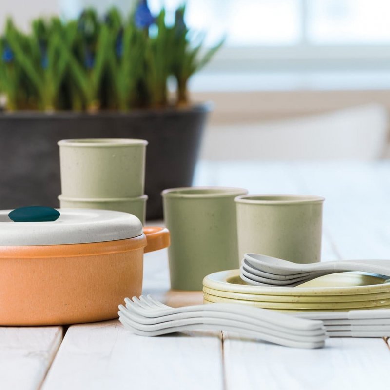 - jedálenská sada vyrobená z bioplastu – z cukrovej trstiny