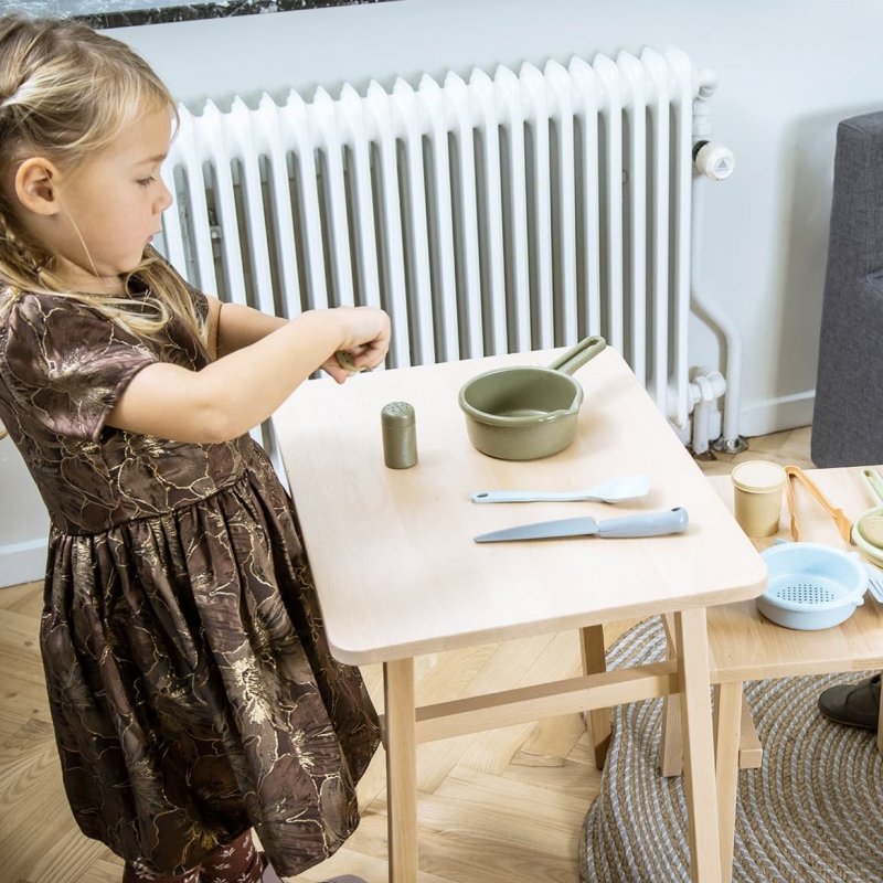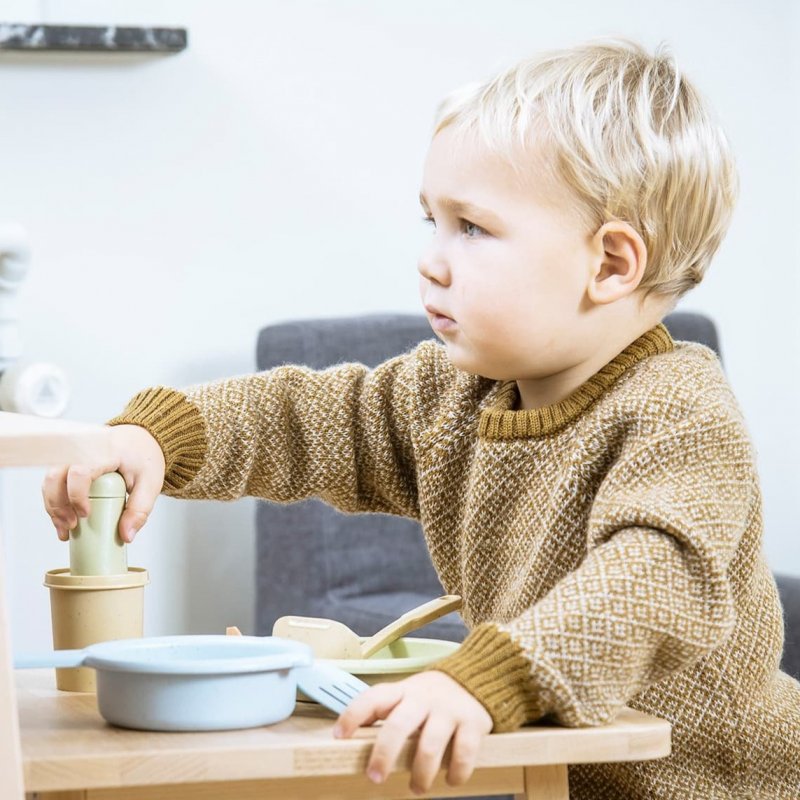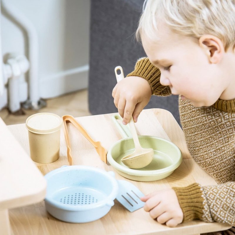 Sada kuchynského náčinia v krásnych trendy farbách, vyrobená z bioplastu. Táto kuchynská sada nabáda k hre a učeniu a je ideálna pre vnútorné aj vonkajšie použitie.