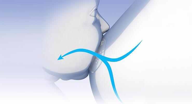 – Podlhovastý tvar zaisťuje maximálnu priľnavosť a prispôsobenie sa prsníku.