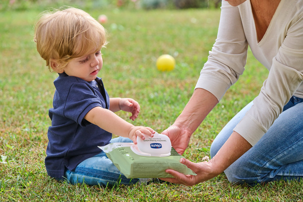 Vlhčené obrúsky Chicco sú vyrobené zo 100 % biologicky odbúrateľných prírodných vlákien a sú ideálne pri výmene plienok aj na čistenie rúk a tváre dieťatka.