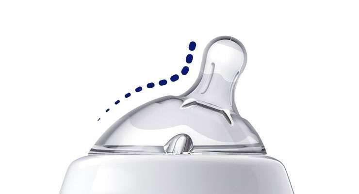 Naklonený tvar cumlíka podporuje pohodlnú a prirodzenú polohu pre novorodencov. Vďaka tvaru prsníka cumlík uľahčuje prechod medzi dojčením a fľašou už od prvých kŕmení.