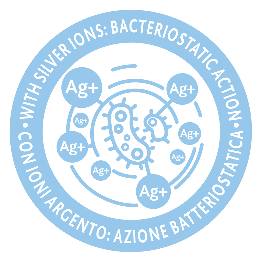 Hubka je obohatená o ióny striebra, ktoré majú bakteriostatický účinok, pomáhajú predchádzať rastu baktérií a nepríjemným zápachom a zachovávajú hygienu výrobku.