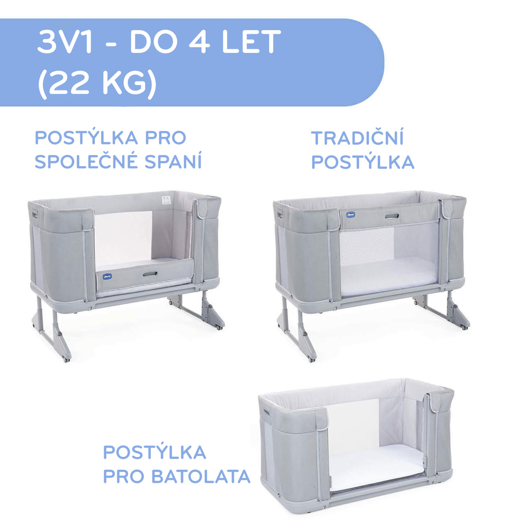 Postieľka Chicco Next2Me Forever predstavuje revolučné riešenie spánku 3v1, ktoré umožňuje rodičom a deťom spať pri sebe tak dlho ako chcú a potrebujú. Vďaka patentovanému systému je lepší spánok pre rodičov a dieťa úplne bezpečný.