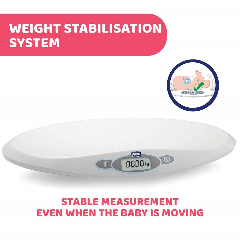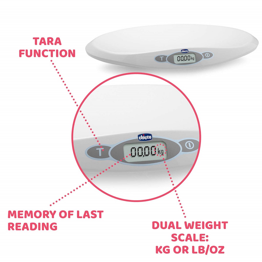 Ergonomicky navrhnutá a kompaktne tvarovaná Chicco Baby Comfort Digitálna elektronická váha zváži Vaše dieťa už od jeho prvých dní. Rozsah váhy je od 30g do 20kg.