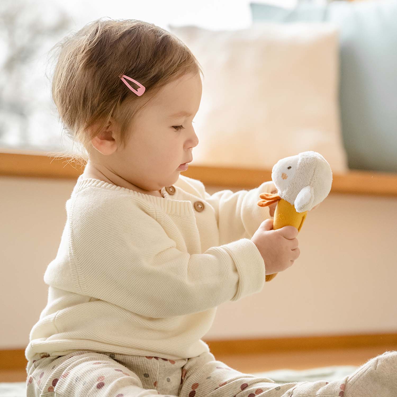 Detská hrkálka je ideálna pre uchopenie a maznanie a je vždy s vašim