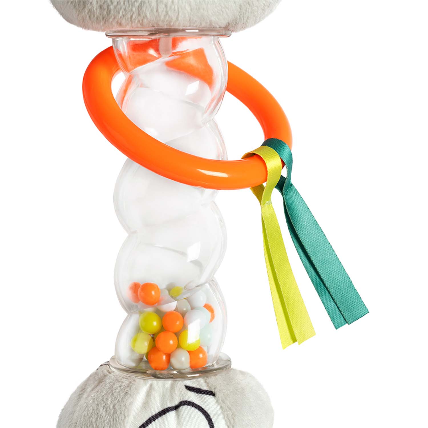 Plyšová hrkálka s množstvom aktivity prvkov ako je úchopový krúžok, hrkálka,
