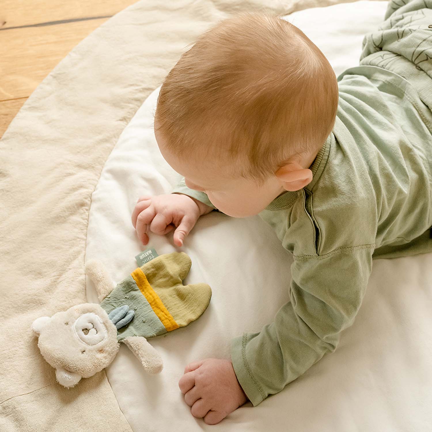 Tvar plyšovej hračky je ideálny na úchop a materiál povzbudzuje k maznaniu.