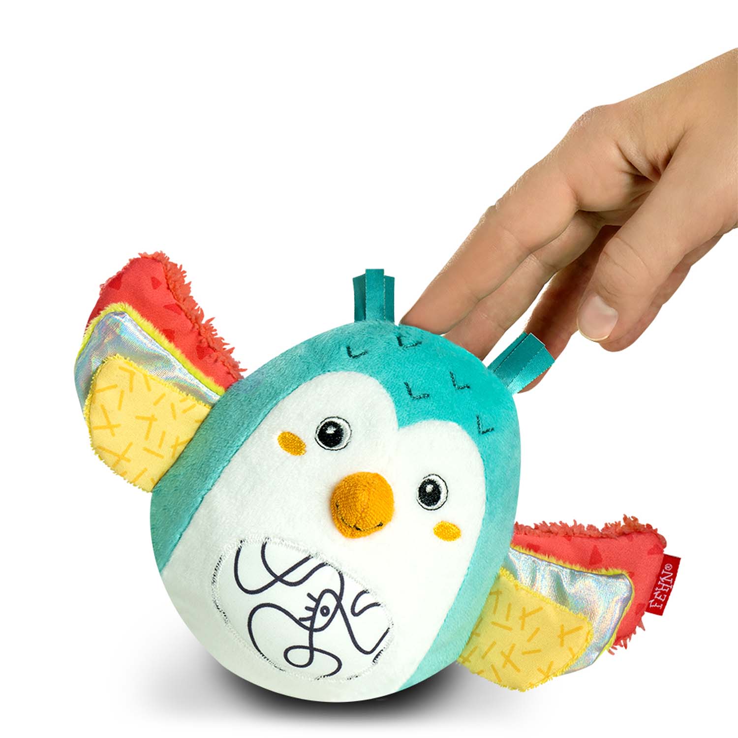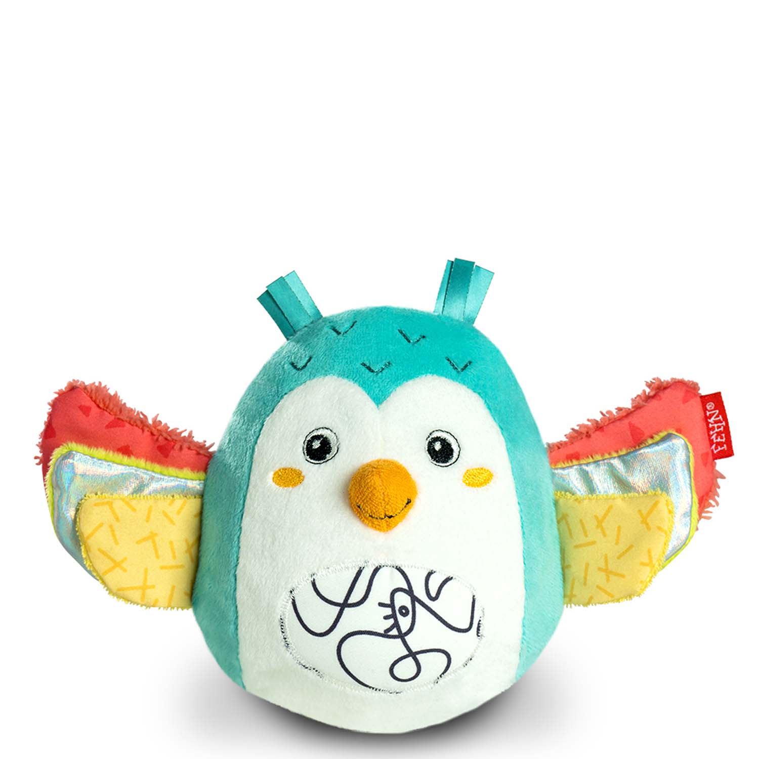 Plyšová hrkálka s množstvom aktivity prvkov ako je zvonček a praskací papier.