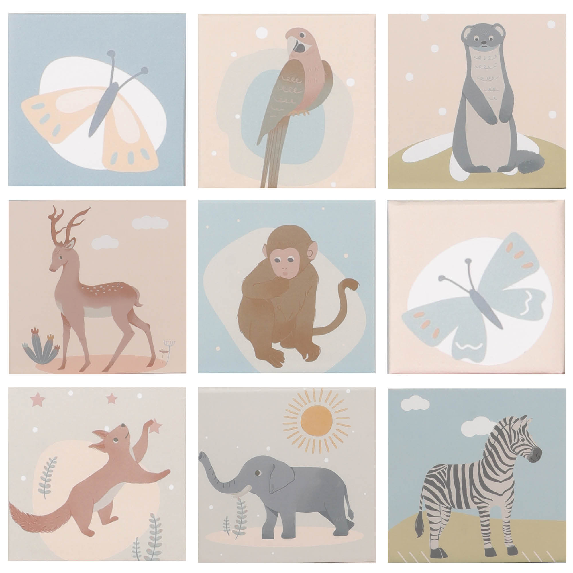 • Ilustrácie zvieratiek (zebra, slon, opica,