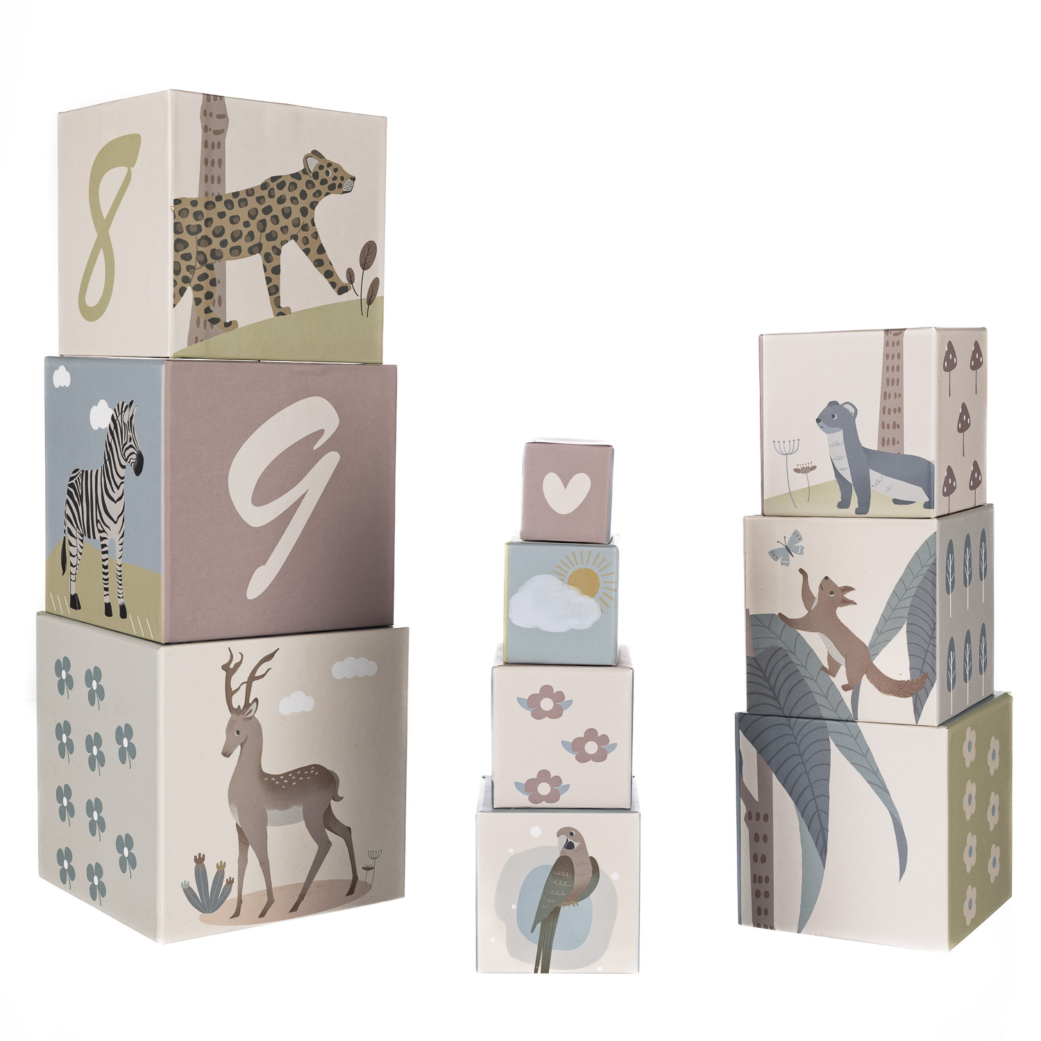 rozvoj? Kartónové stohovacie kocky s jemnými pastelovými ilustráciami zvieratiek