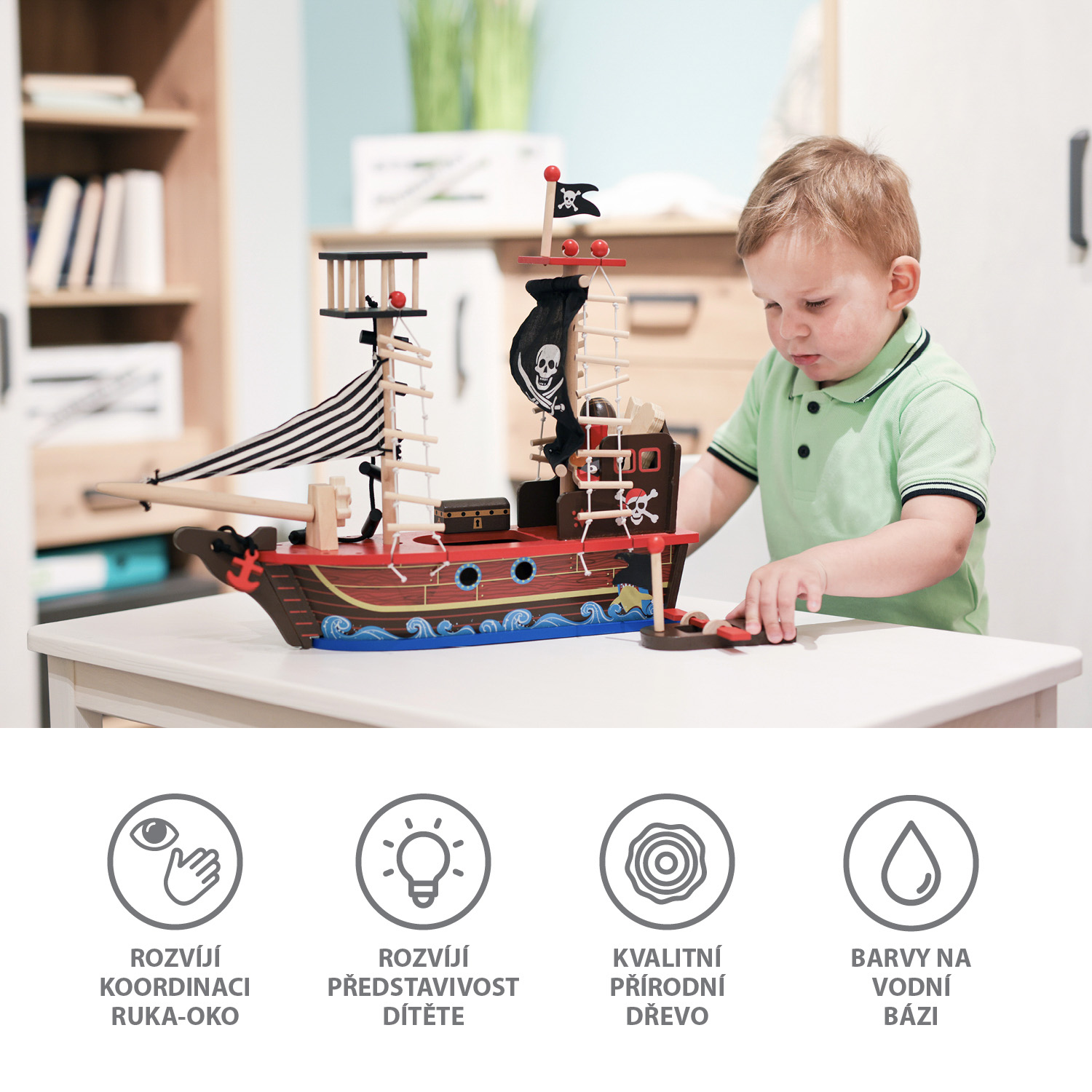 hračkou aj vášho malého piráta. Loď je ideálnym prostriedkom na podporu rozvoja