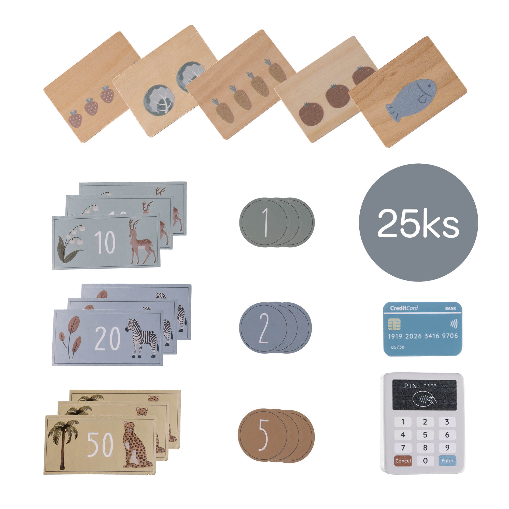 • Počet dielov: 25 ks (peniaze, karta, kartičky, terminál,