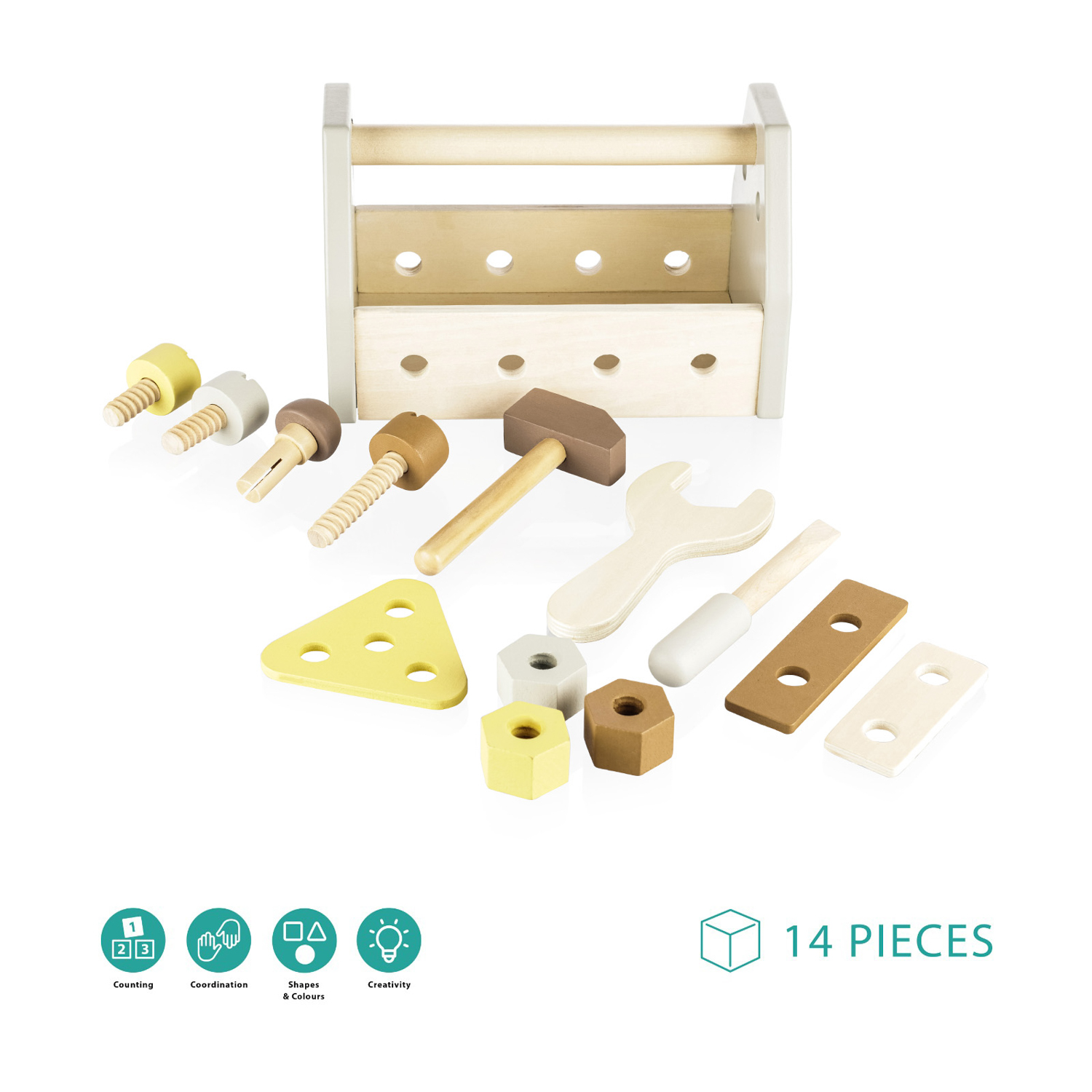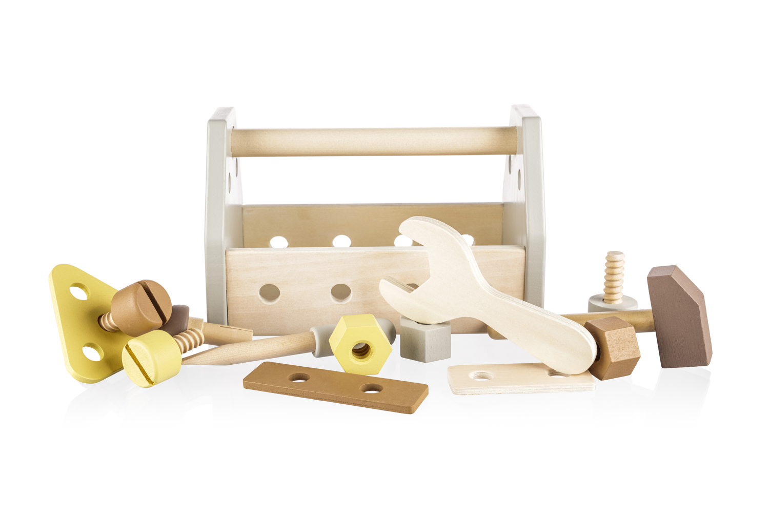 Drevená sada náradia pre malých zvedavých staviteľov.