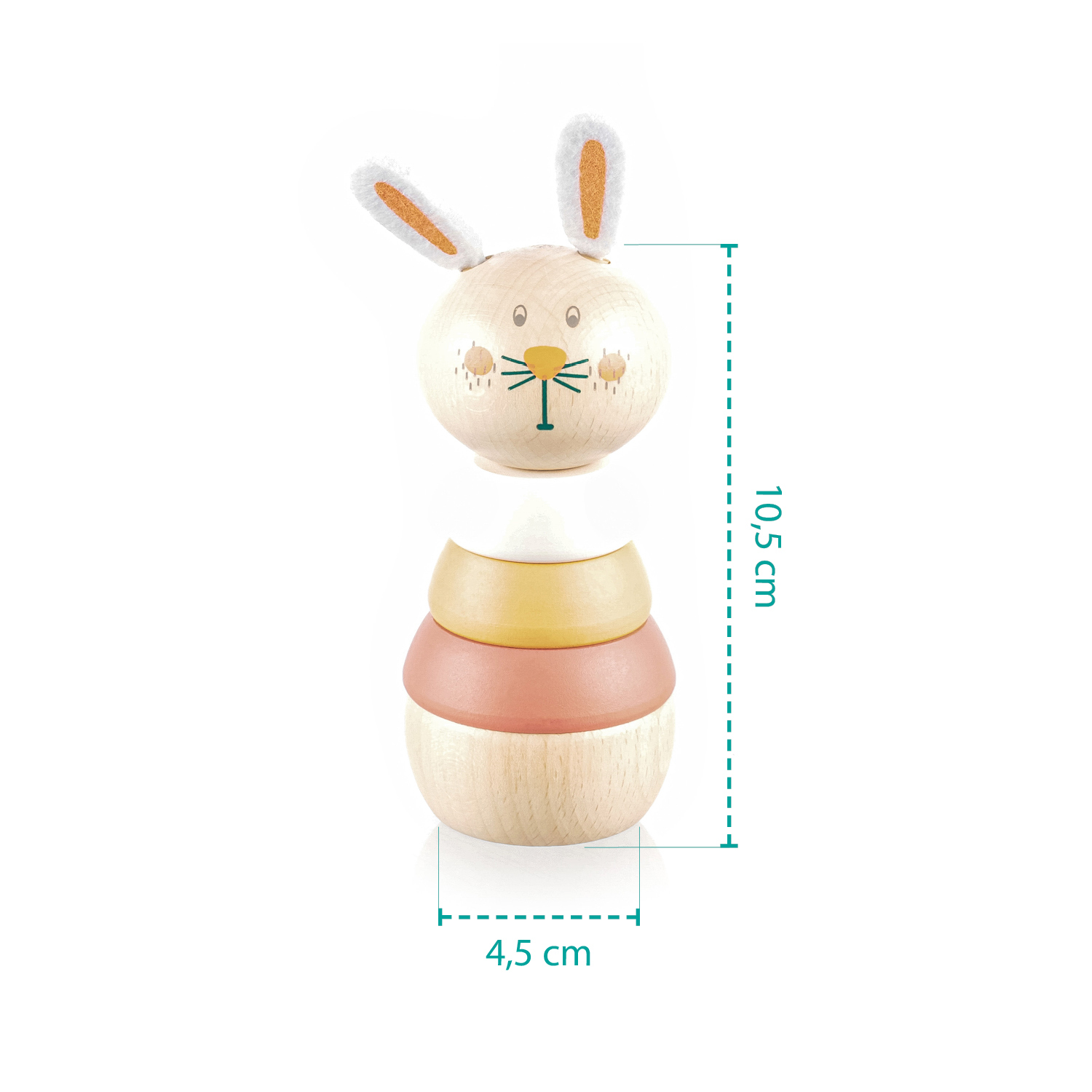 Dieťa sa tiež naučí rozpoznávať veľkosť a základné počítanie. Hračka je vyrobená z kvalitného bukového dreva a natretá farbami na vodnej báze.