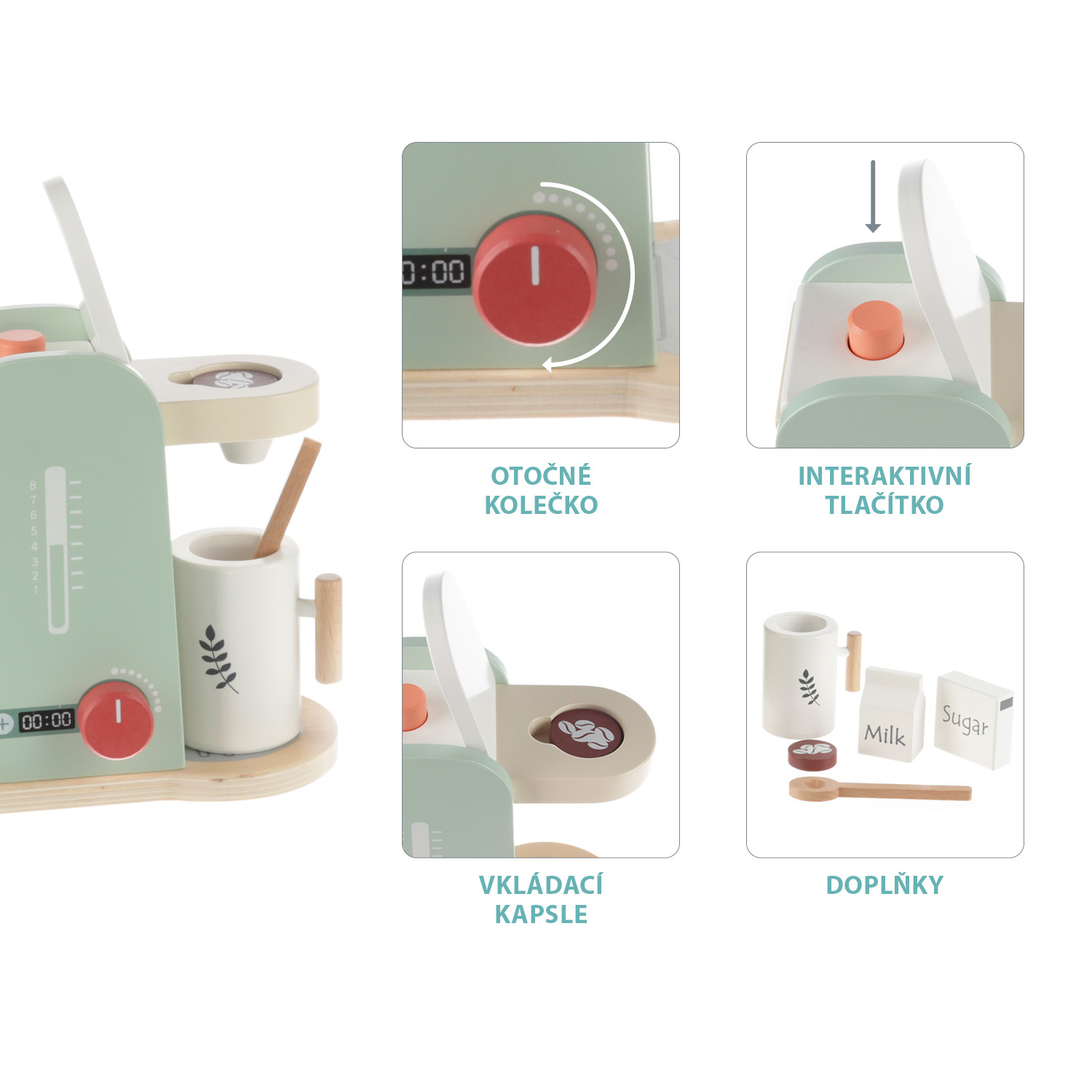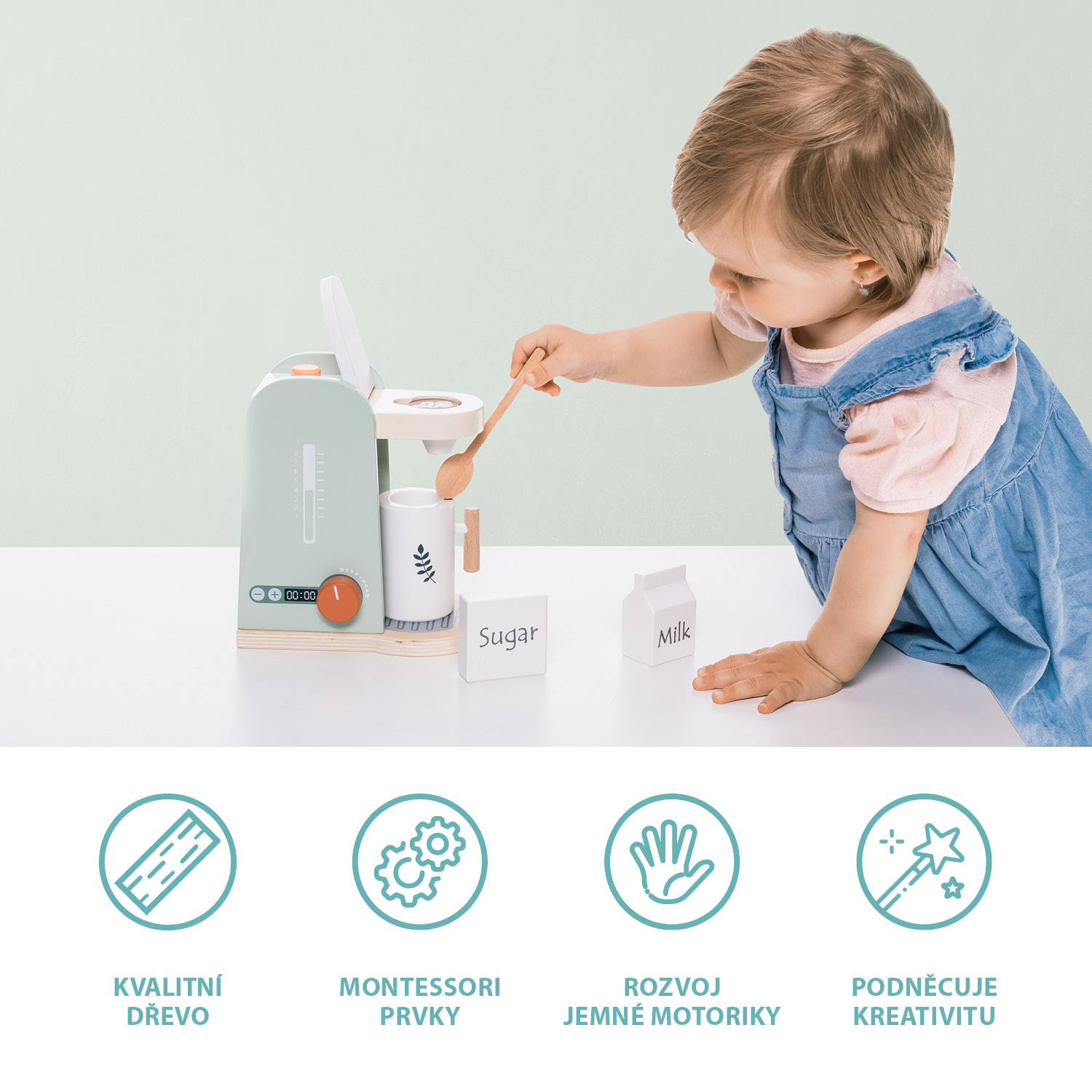 kávy. Hračka je vyrobená z kvalitného dreva a farieb na vodnej báze.