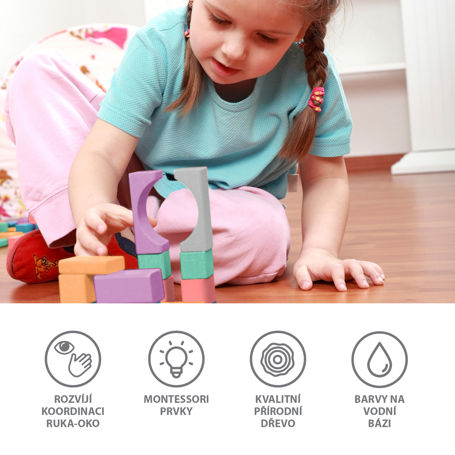 bloky, ktoré podporujú rozvoj priestorového a logického myslenia, koordinácie