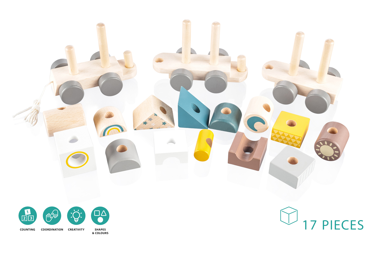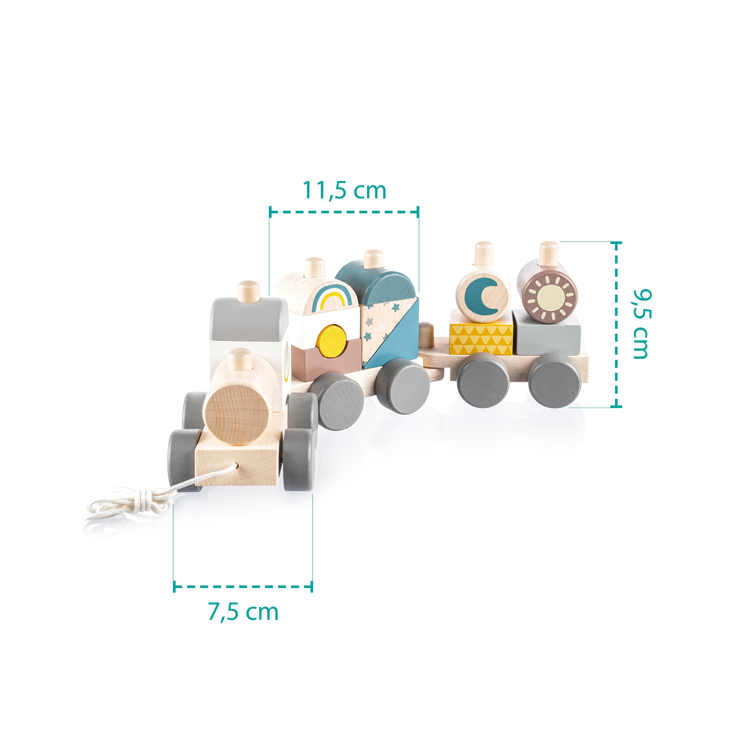 schopnosť riešiť problémy. Vlak je vyrobený z odolného bukového dreva a farieb
