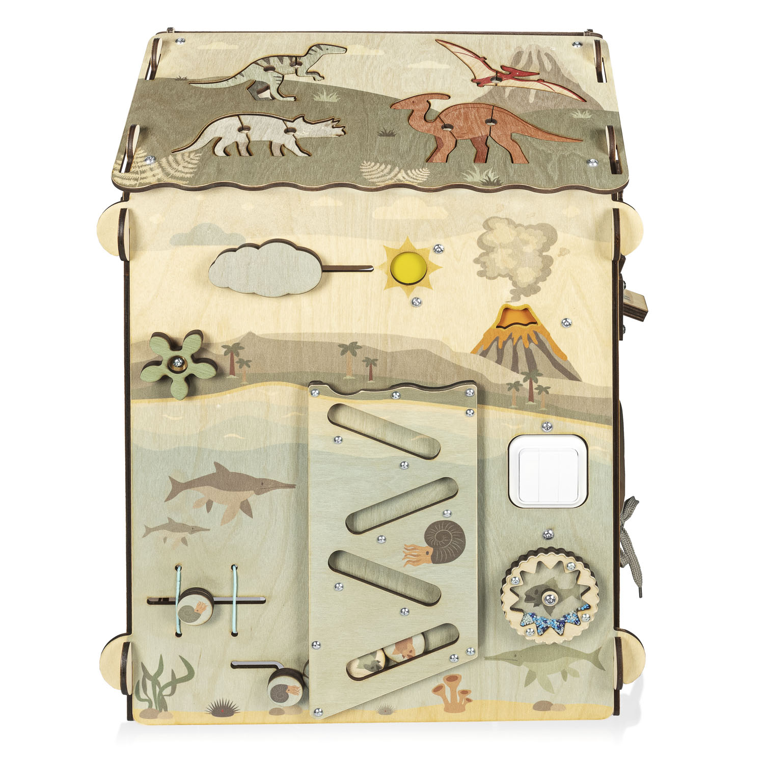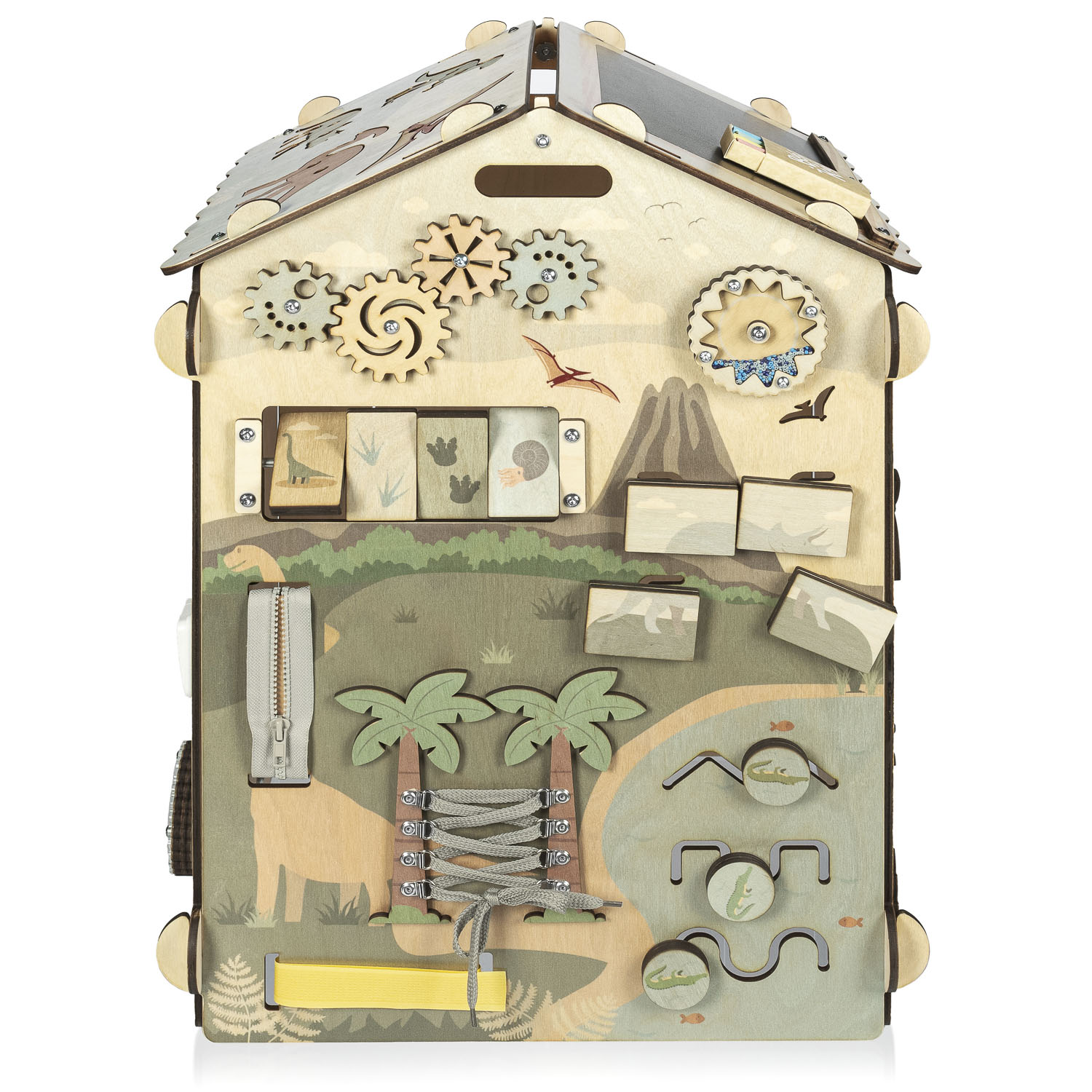 Na stenách domčeka čakajú 3D drevené puzzle dinosaurov, ktoré