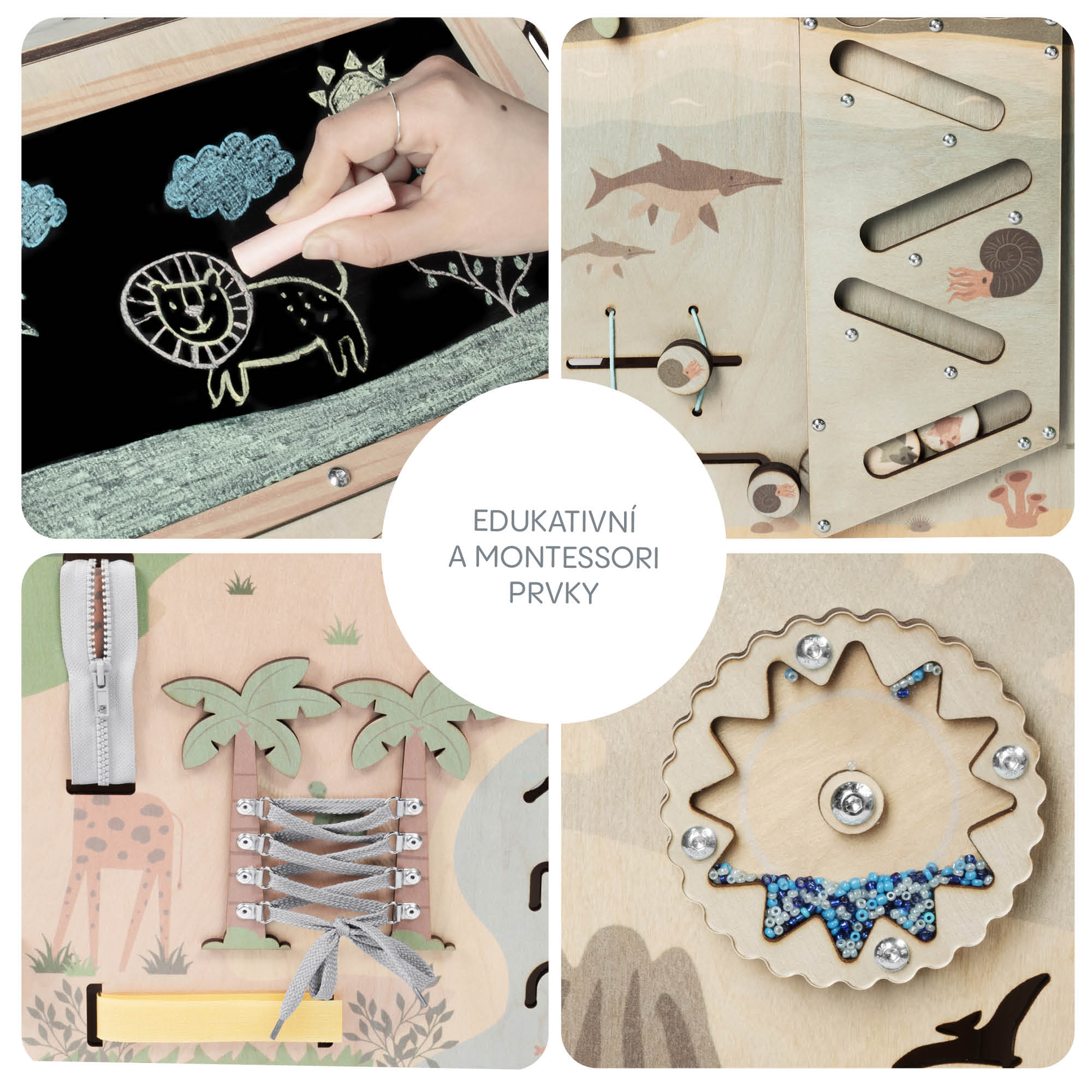 ideálne rozmery (61 × 40 cm), je stabilný a krásne ilustrovaný v pravekom štýle.