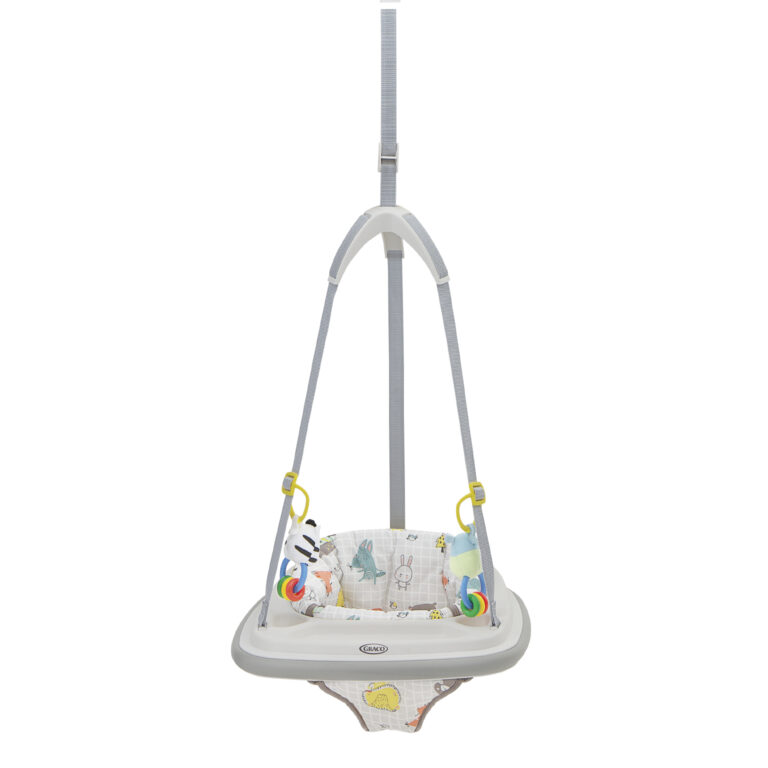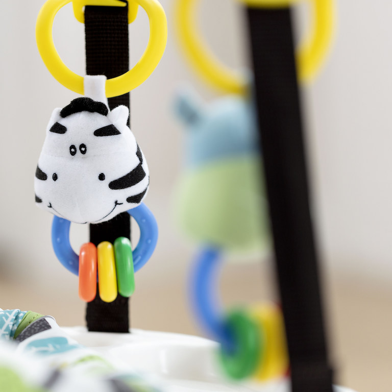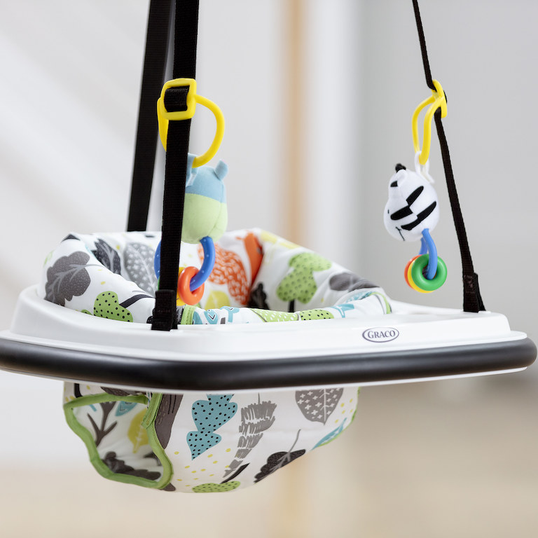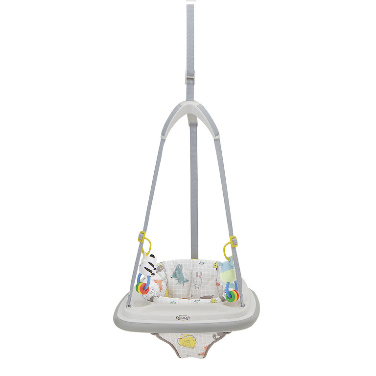 Bezpečná zábava – Kvalitná svorka pevne uchytí hopsadlo na rám dverí, popruhy s ukrytým bezpečnostným lankom pevne drží sedadlo, a vďaka gumovému okraju nedôjde k poškodeniu zárubni dverí. Ostáva len nastaviť vzdialenosť od podlahy a zábava môže začať!