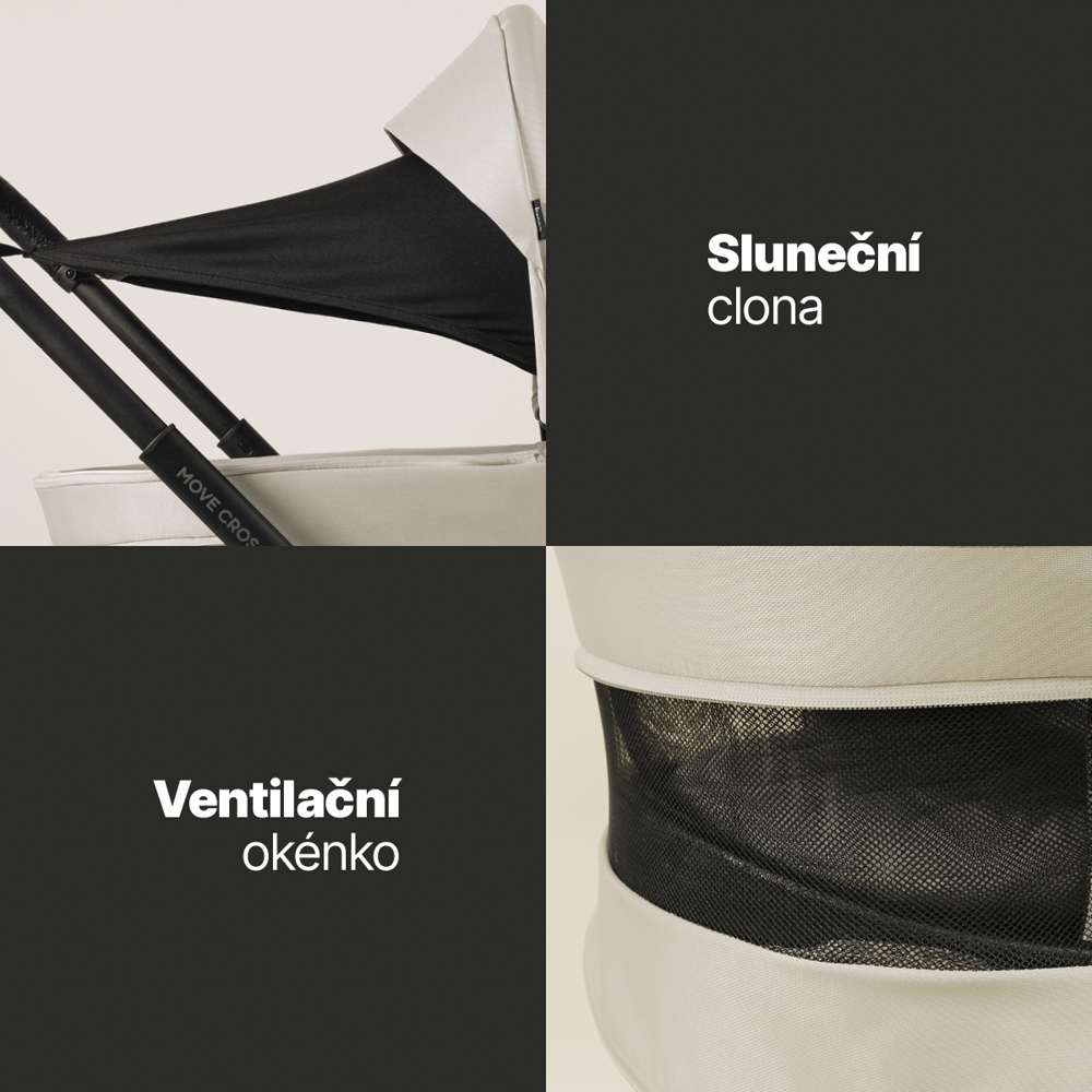 Pohodlie zabezpečuje mäkký matrac a predĺžiteľná strieška s vetruodolnou
