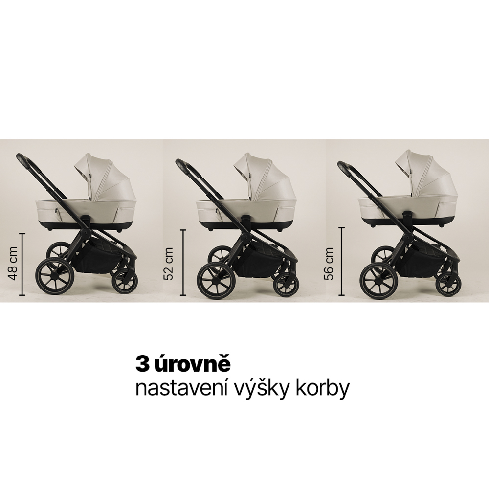 • Nastavenie výšky na podvozku: 3 úrovne – 48 / 52 / 56 cm od