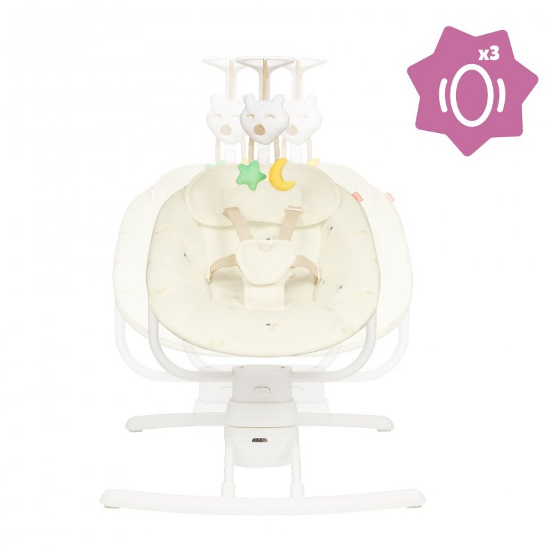 Byť rodičom je niekedy veľmi ťažké – starostlivosť o bábätko či príprava jedla zaberie mamičke veľa času a už jej nezostáva žiadny čas na seba. A preto je tu naša motorizovaná hojdačka, ktorá mamičke aspoň na chvíľu poskytne pár rúk navyše! Hojdačka Lateral imituje upokojujúci pohyb paží s 3 rýchlosťami hojdania zo strany na stranu. Vďaka mäkkej opierke hlavy a tvaru navrhnutému špeciálne pre chrbticu novorodencov je táto hojdačka veľmi pohodlná a vhodná pre deti už od narodenia.