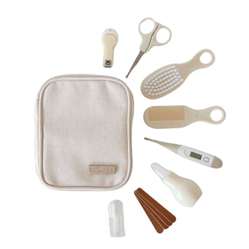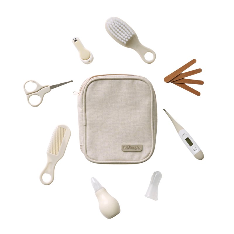 • obsahuje: pilníky, nožnice a klieštiky na nechty, silikónovú kefku na zúbky, hrebeň a kefu na vlasy, digitálny flexibilný teplomer, nosnú odsávačku