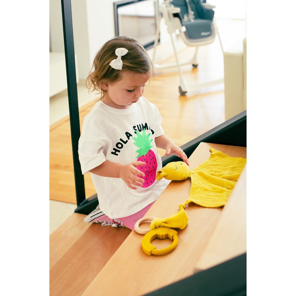 Hryzátko s drobnými výstupkami pre úľavu detských ďasien. Evolučné hryzátka sú bezpečné, ergonomické, ľahké a veľmi zábavné.