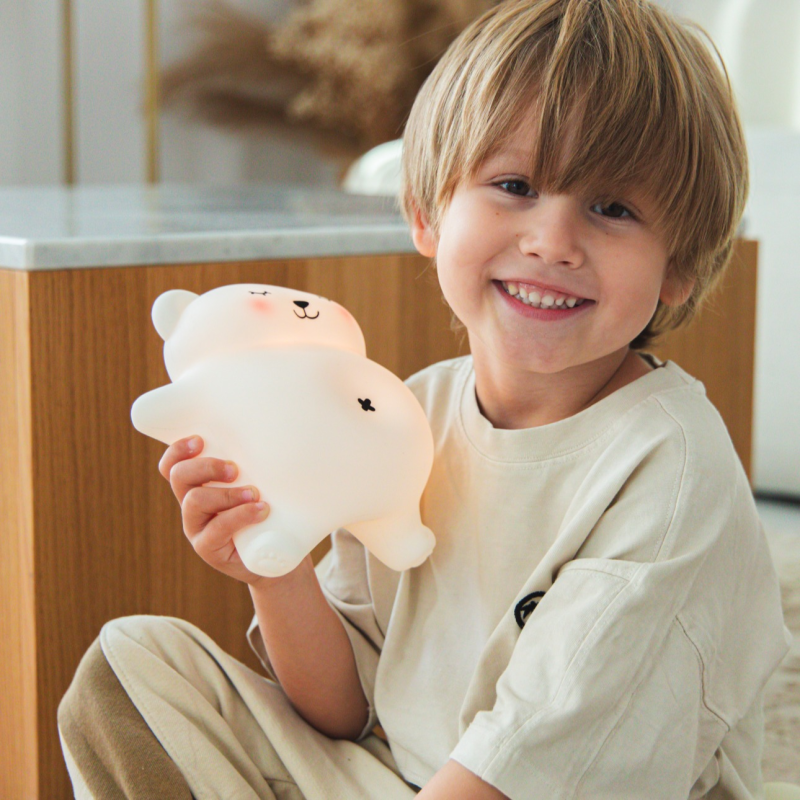 Pritúľte sa k svojmu novému kamarátovi na spanie: rozkošnému bielemu medvedíkovi, ktorý svieti a chrápe! Tento očarujúci malý medvedík ponúka tri úrovne jemného osvetlenia a vytvára tak upokojujúcu atmosféru, ideálnu pre spokojný spánok. Stačí stlačiť tlačidlo a medvedík začne chrápať a jeho bruško sa začne pohybovať, ako by spal pokojným spánkom vedľa vás. Lampička zostáva na dotyk chladná a je úplne bezpečná. Vďaka praktickému USB-C nabíjaniu si môžete vziať lampičku kamkoľvek potrebujete – do detskej izbičky, na dovolenku alebo napríklad na návštevu k babičke. Táto lampička je perfektnou voľbou pre každého, kto hľadá niečo užitočné a zároveň krásne.