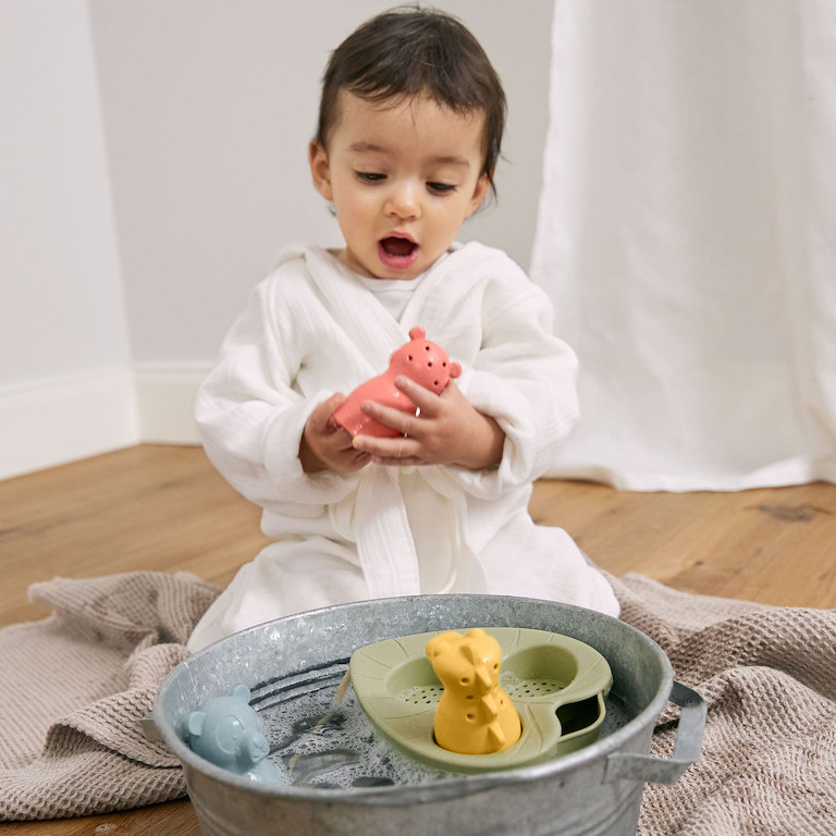 Boat Toy Set Water Friends olive je jedným z ďalších výrobkov značky Lässig, vyznačujúcim sa vysokou kvalitou materiálov, ich spracovaním a svojou funkčnosťou. Štvordielna sada hračiek je pripravená na veľkolepú plavbu okolo sveta. Skladá sa z lodi v tvare tropického listu a troch zvieracích pasažierov, ktorí pochádzajú z rôznych kontinentov. Vaše dieťa môže dať priechod svojej kreativite a užiť si zábavu ako vo vode, tak na piesku.