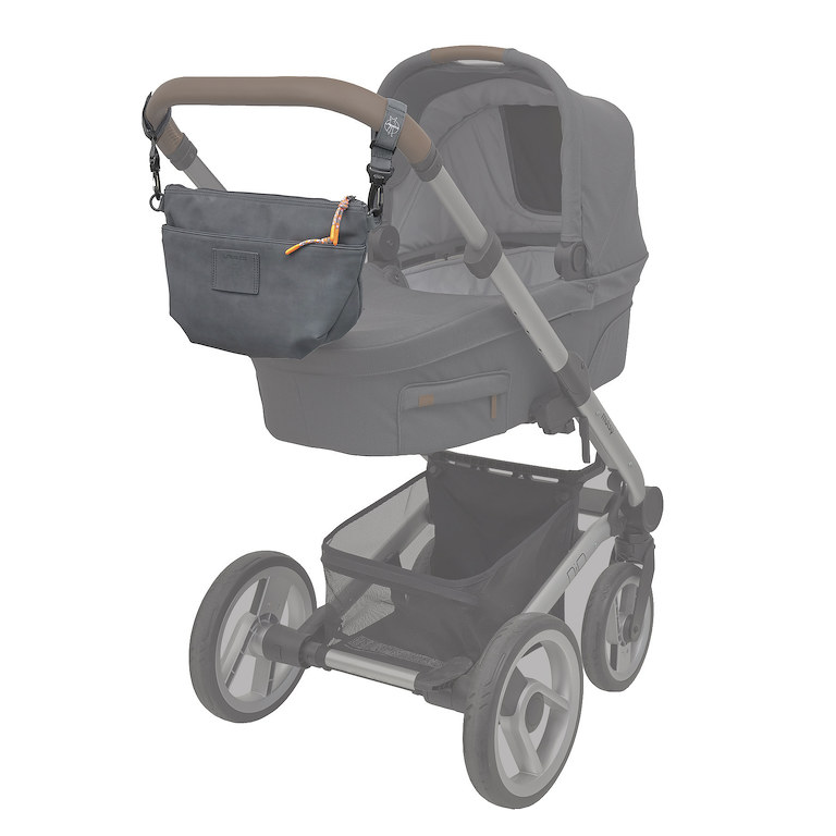 možno ho pripevniť na kočík pomocou háčikov, nosiť cez rameno ako kabelku alebo cross bag