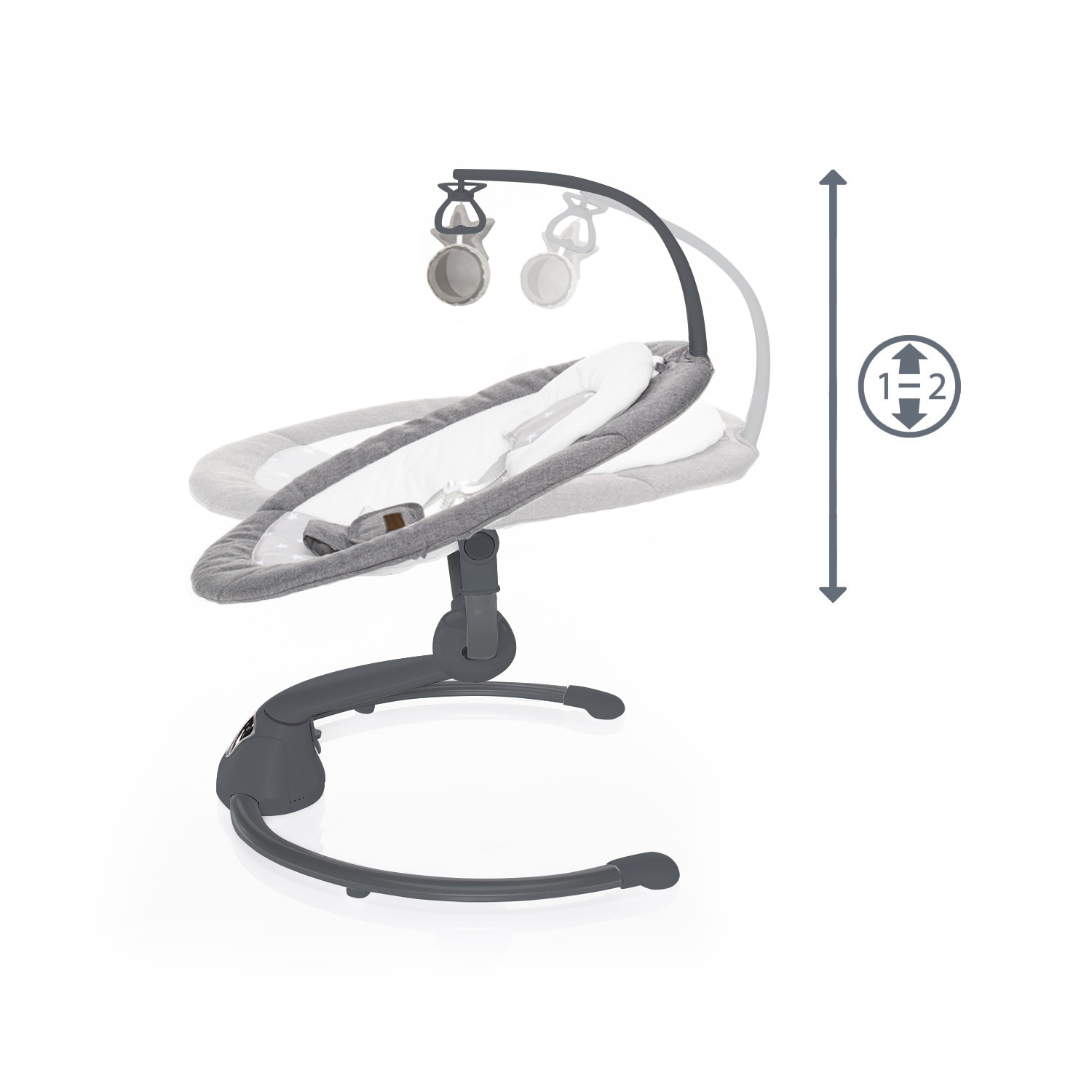 panelom, na ktorom môžete prehľadne nastaviť intenzitu a rýchlosť hojdania.