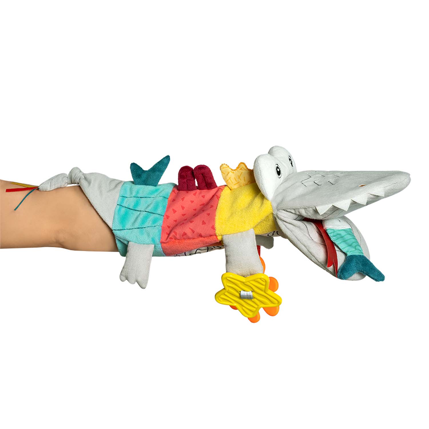 S látkovým maňáskom krokodíla je zábava z hrania zaručená. Hrkálky, praskací