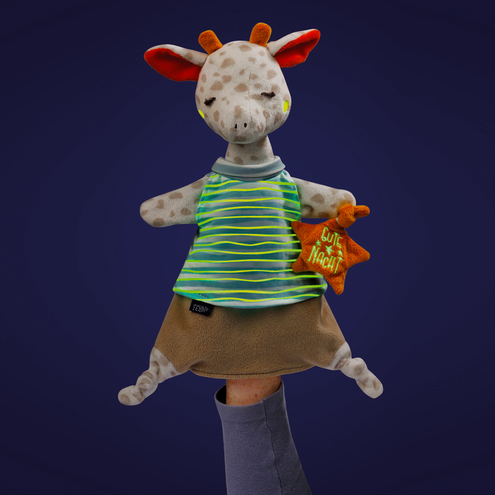 žirafa z kolekcie Gute Nacht. Roztomilá plyšová hračka z mäkkého velúru bude