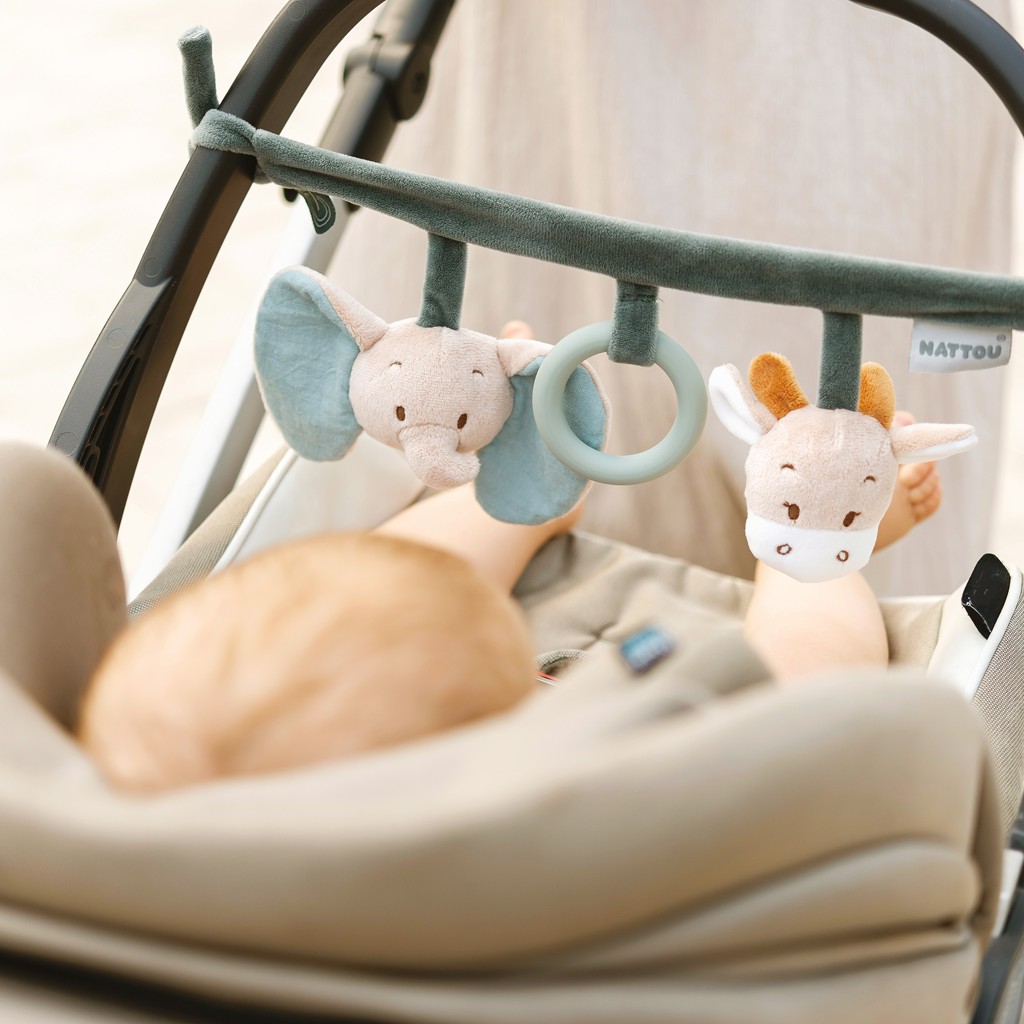 Mäkká závesná hračka ponúka zábavu nielen doma, ale aj na cestách. Pomocou šnúrok ju môžete rýchlo a flexibilne pripevniť k postieľke, kočíku, detskej sedačke, ohrádke – kdekoľvek potrebujete. Ponúka rôzne zábavné aktivity na objavovanie a uchopenie.