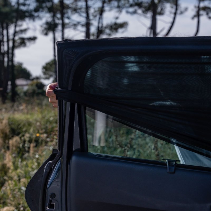 Sada 2 navliekacích slnečných clôn, ktoré sú ideálne ako ochrana nielen pred horúčavou, ale aj pred hmyzom.