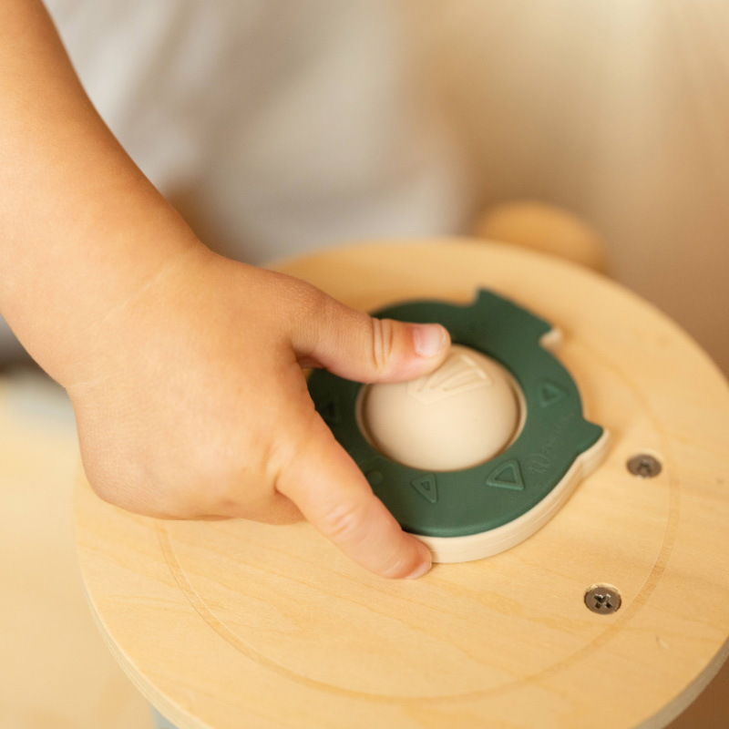 Elastické tlačidlo možno stláčať a posúvať z jednej strany na druhú, čo napomáha rozvoju jemnej motoriky a obratnosti prstov.