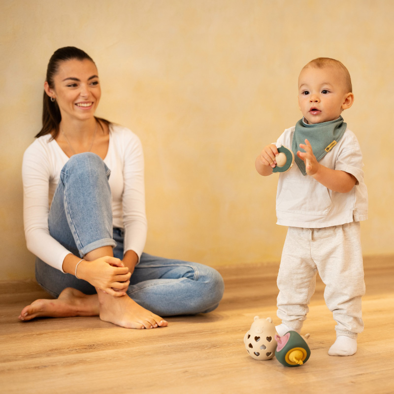 Hračka je vyrobená z kvalitného silikónu vhodného na styk s potravinami, čo zaručuje bezpečnosť aj pre najmenšie deti. Je navrhnutá tak, aby uľavila ďasnám bábätka a podporila rozvoj schopnosti žuvať, zároveň povzbudzuje k cvičeniu úchopu.