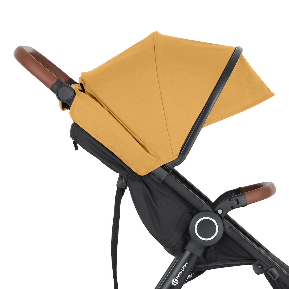 – Predĺžiteľná strieška so šiltom a maximálnym krytím.