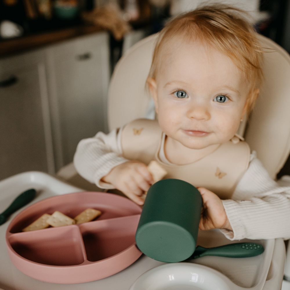 Praktický tanier je celý vyrobený z potravinárskeho silikónu bez obsahu BPA. Vďaka tomu ho možno bezpečne používať na všetky potraviny, teplé aj studené, a jedlo v ňom možno bez obáv ohrievať v mikrovlnnej rúre alebo uchovávať v chladničke. Vďaka odolnému a mäkkému silikónu sa nemusíte obávať, že sa tanier rozbije, odštiepi alebo zdeformuje – môžete ho nepoškodený používať dlhý čas. Je vhodný pre deti od 6 mesiacov, ktoré sa zoznamujú s rozšírenou stravou, a pre tie, ktoré sa už úspešne učia jesť samy.