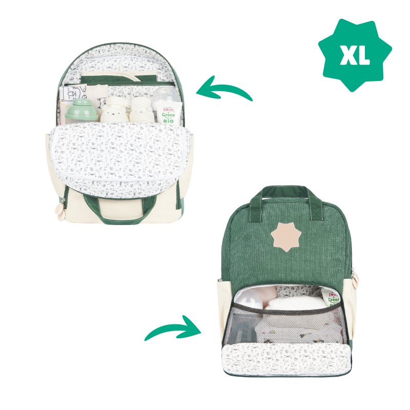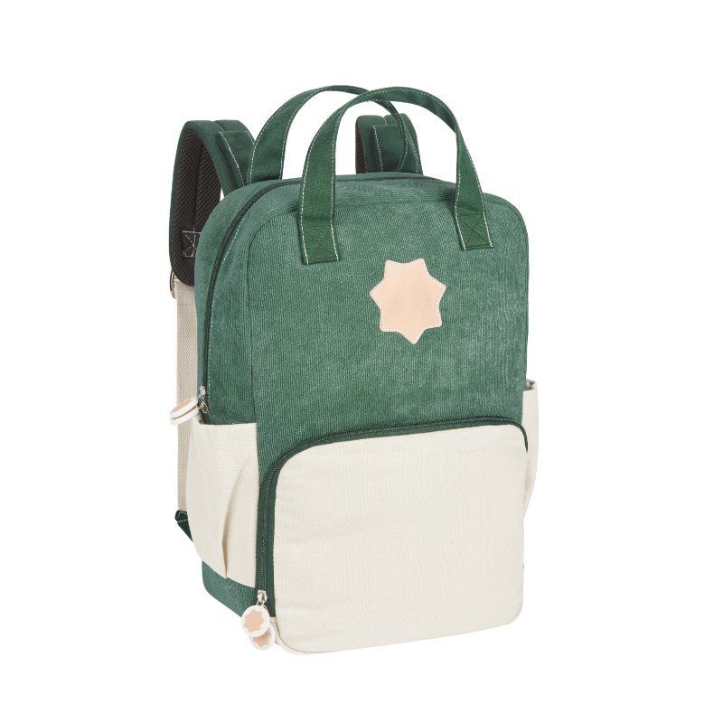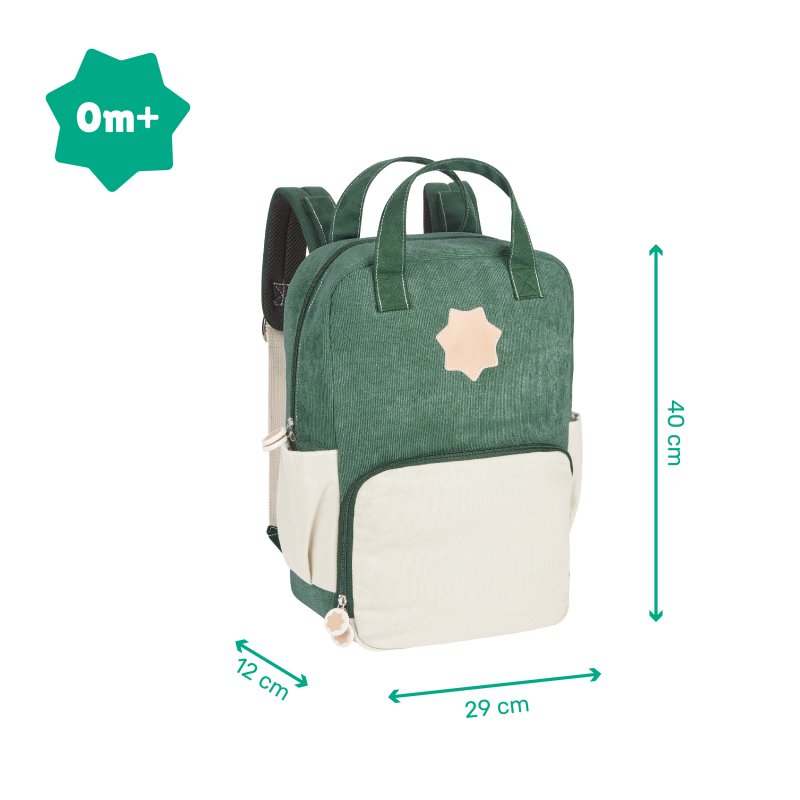 Batoh Safari má prirodzený vzhľad s jemnými farbami, bavlneným plátnom a manšestrom. Vďaka veľkej úložnej kapacite a mnohým úložným priehradkám je možné do neho zabaliť všetko, čo je potrebné a rýchlo to nájsť! Jeho dvojité otváranie umožňuje ľahký prístup k obsahu tašky zhora aj spredu. Dá sa pripevniť aj na kočík. Bonus navyše: súčasťou je prebaľovacia podložka!