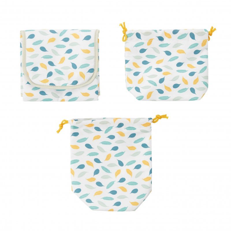 - 2 menšie puzdra sú rôzne veľké (20cm x 17cm a 18cm x 22cm), majú vodeodolnú podšívku a roztomilú sťahovacie šnúrku – ideálne na plienky, náhradné oblečenie, hygienické potreby a iné.